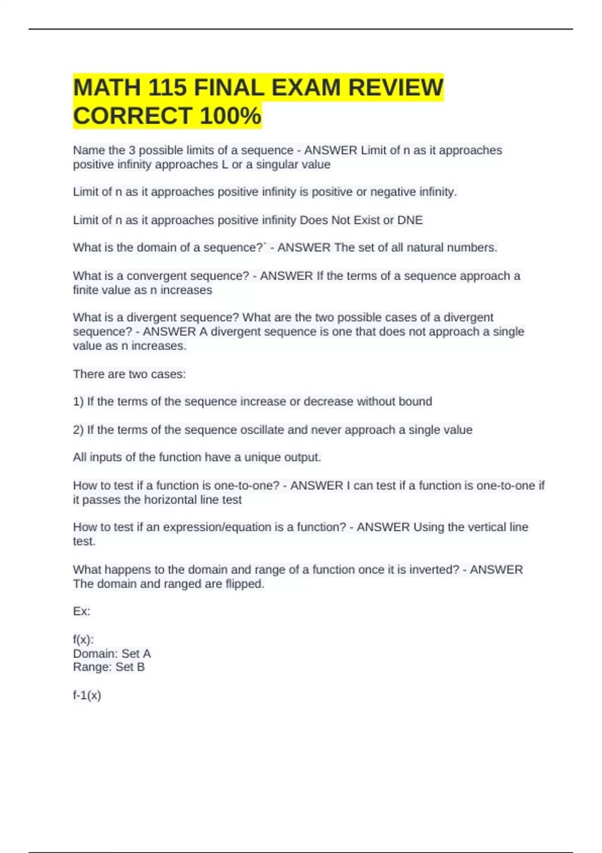 MATH 115 FINAL EXAM REVIEW CORRECT 100%