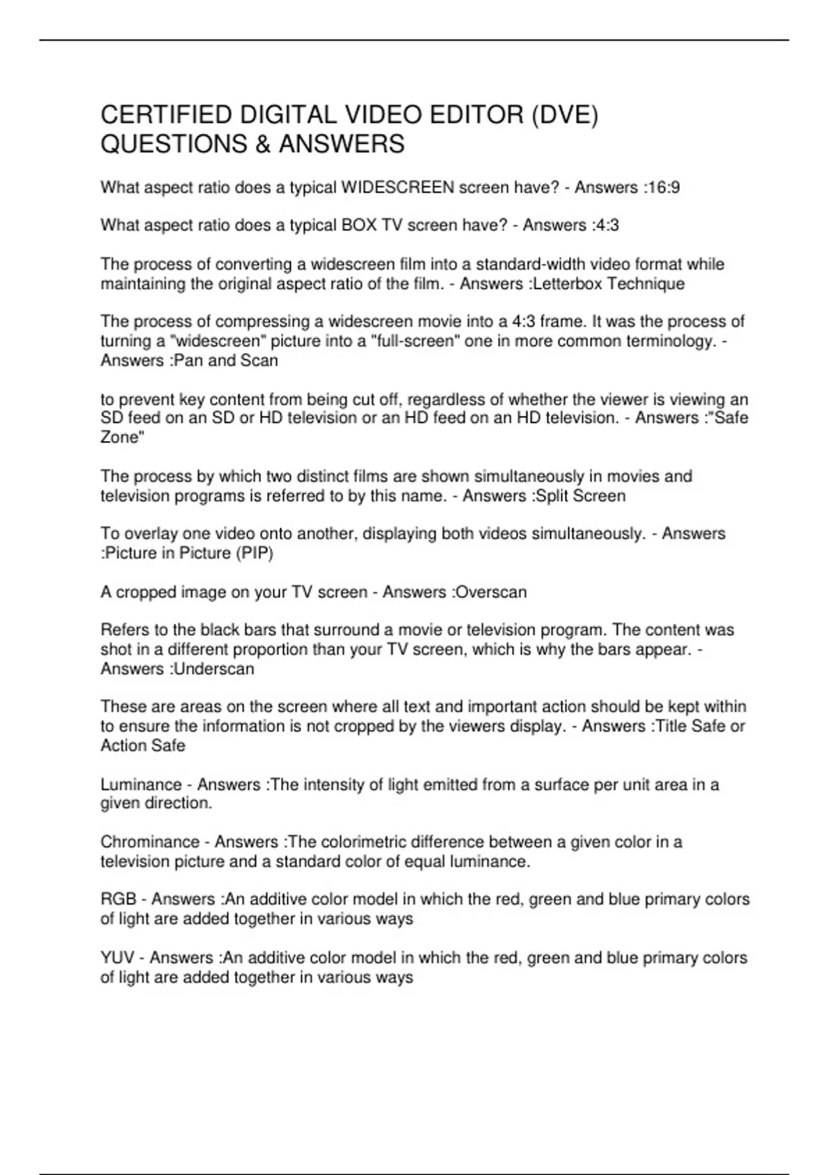 CERTIFIED DIGITAL VIDEO EDITOR (DVE) QUESTIONS & ANSWERS