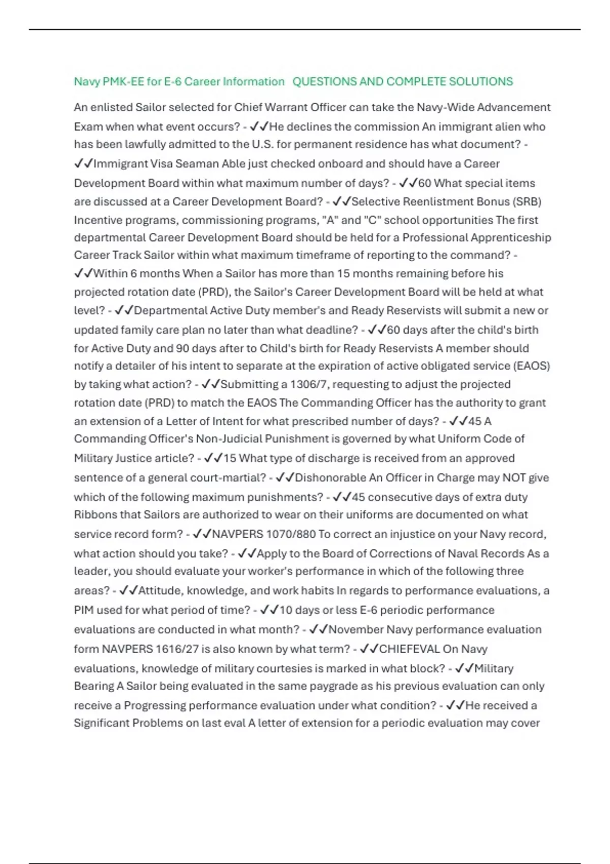 Navy PMK-EE for E-6 Career Information QUESTIONS AND COMPLETE SOLUTIONS