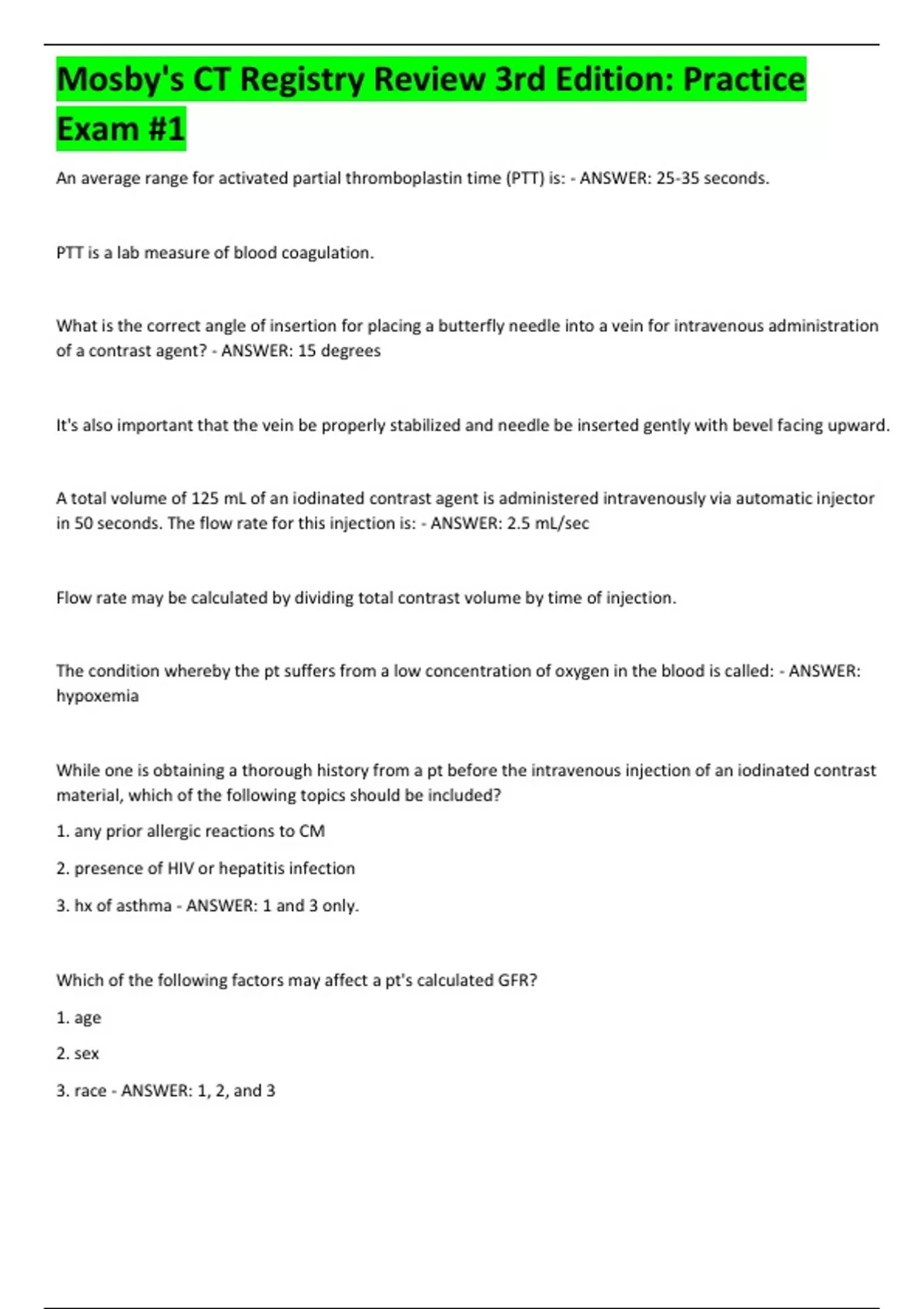 Mosby's CT Registry Review 3rd Edition: Practice