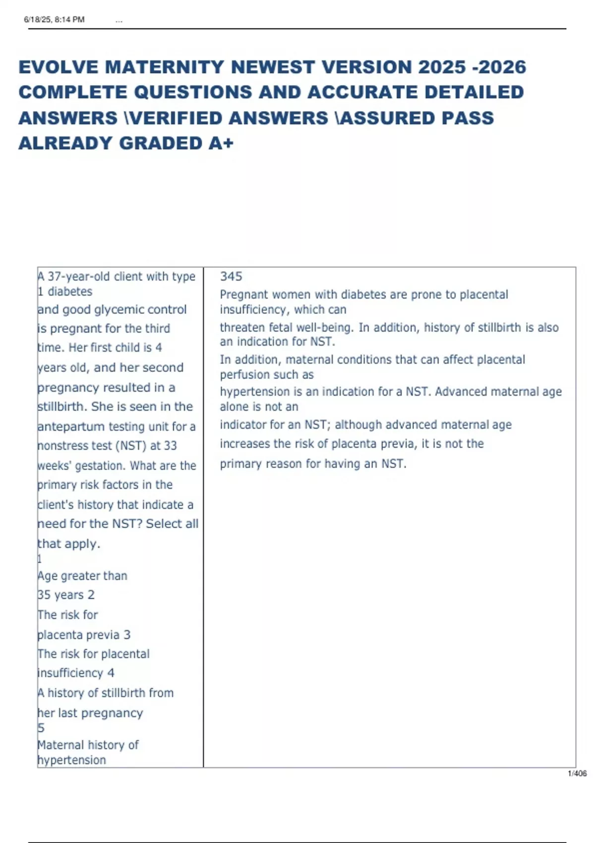 EVOLVE MATERNITY NEWEST VERSION COMPLETE QUESTIONS AND ACCURATE DETAILED ANSWERS VERIFIED ANSWERS ASSURED PASS ALREADY GRADED A+ EVOLVE MATERNITY NEWEST VERSION COMPLETE QUESTIONS AND ACCURATE DETAILED ANSWERS VERIFIED ANSWERS ASSURED PASS ALREADY GRADED A+ EVOLVE MATERNITY NEWEST VERSION COMPLETE QUESTIONS AND ACCURATE DETAILED ANSWERS VERIFIED ANSWERS ASSURED PASS ALREADY GRADED A+ EVOLVE MATERNITY NEWEST VERSION COMPLETE QUESTIONS AND ACCURATE DETAILED ANSWERS VERIFIED ANSWERS ASSURED PASS ALREADY GRADED A+ EVOLVE MATERNITY NEWEST VERSION COMPLETE QUESTIONS AND ACCURATE DETAILED ANSWERS VERIFIED ANSWERS ASSURED PASS ALREADY GRADED A+ EVOLVE MATERNITY NEWEST VERSION COMPLETE QUESTIONS AND ACCURATE DETAILED ANSWERS VERIFIED ANSWERS ASSURED PASS ALREADY GRADED A+ EVOLVE MATERNITY NEWEST VERSION COMPLETE QUESTIONS AND ACCURATE DETAILED ANSWERS VERIFIED ANSWERS ASSURED PASS ALREADY GRADED A+ EVOLVE MATERNITY NEWEST VERSION COMPLETE QUESTIONS AND ACCURATE DETAILED ANSWERS VERIFIED ANSWERS ASSURED PASS ALREADY GRADED A+ EVOLVE MATERNITY NEWEST VERSION COMPLETE QUESTIONS AND ACCURATE DETAILED ANSWERS VERIFIED ANSWERS ASSURED PASS ALREADY GRADED A+ EVOLVE MATERNITY NEWEST VERSION COMPLETE QUESTIONS AND ACCURATE DETAILED ANSWERS VERIFIED ANSWERS ASSURED PASS ALREADY GRADED A+ EVOLVE MATERNITY NEWEST VERSION COMPLETE QUESTIONS AND ACCURATE DETAILED ANSWERS VERIFIED ANSWERS ASSURED PASS ALREADY GRADED A+ EVOLVE MATERNITY NEWEST VERSION COMPLETE QUESTIONS AND ACCURATE DETAILED ANSWERS VERIFIED ANSWERS ASSURED PASS ALREADY GRADED A+ EVOLVE MATERNITY NEWEST VERSION COMPLETE QUESTIONS AND ACCURATE DETAILED ANSWERS VERIFIED ANSWERS ASSURED PASS ALREADY GRADED A+ EVOLVE MATERNITY NEWEST VERSION COMPLETE QUESTIONS AND ACCURATE DETAILED ANSWERS VERIFIED ANSWERS ASSURED PASS ALREADY GRADED A+