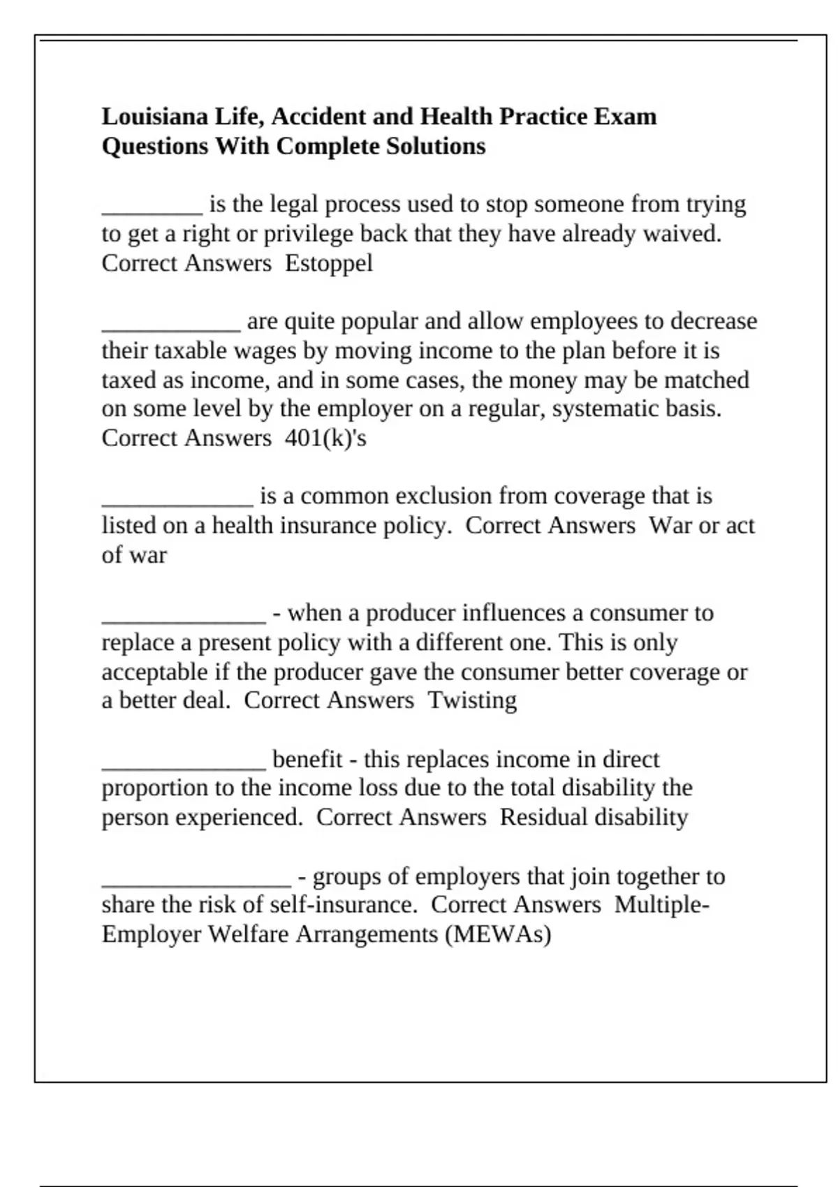 Correct Answers Estoppel