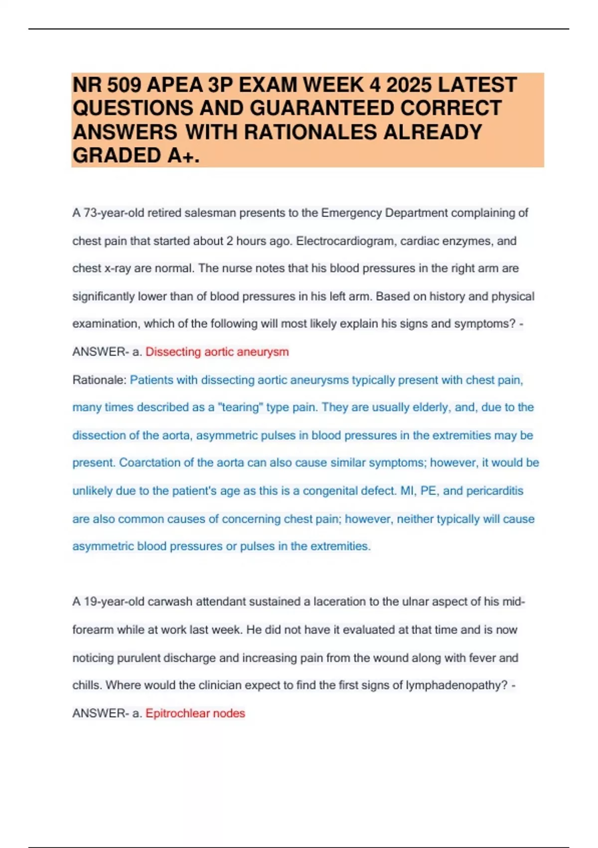 NR 509 APEA 3P EXAM WEEK 4 2025 LATEST QUESTIONS AND GUARANTEED CORRECT ANSWERS WITH RATIONALES ALREADY GRADED A+.NR 509 APEA 3P EXAM WEEK 4 2025 LATEST QUESTIONS AND GUARANTEED CORRECT ANSWERS WITH RATIONALES ALREADY GRADED A+.NR 509 APEA 3P EXAM WEEK 4 2025 LATEST QUESTIONS AND GUARANTEEDNR 509 APEA 3P EXAM WEEK 4 2025 LATEST QUESTIONS AND GUARANTEED CORRECT ANSWERS WITH RATIONALES ALREADY GRADED A+.NR 509 APEA 3P EXAM WEEK 4 2025 LATEST QUESTIONS AND GUARANTEED CORRECT ANSWERS WITH RATIONALES ALREADY GRADED A+.NR 509 APEA 3P EXAM WEEK 4 2025 LATEST QUESTIONS AND GUARANTEED CORRECT ANSWERS WITH RATIONALES ALREADY GRADED A+.NR 509 APEA 3P EXAM WEEK 4 2025 LATEST QUESTIONS AND GUARANTEED CORRECT ANSWERS WITH RATIONALES ALREADY GRADED A+.NR 509 APEA 3P EXAM WEEK 4 2025 LATEST QUESTIONS AND GUARANTEED CORRECT ANSWERS WITH RATIONALES ALREADY GRADED A+.NR 509 APEA 3P EXAM WEEK 4 2025 LATEST QUESTIONS AND GUARANTEED CORRECT ANSWERS WITH RATIONALES ALREADY GRADED A+.NR 509 APEA 3P EXAM WEEK 4 2025 LATEST QUESTIONS AND GUARANTEED CORRECT ANSWERS WITH RATIONALES ALREADY GRADED A+. CORRECT ANSWERS WITH RATIONALES ALREADY GRADED A+.NR 509 APEA 3P EXAM WEEK 4 2025 LATEST QUESTIONS AND GUARANTEED CORRECT ANSWERS WITH RATIONALES ALREADY GRADED A+.NR 509 APEA 3P EXAM WEEK 4 2025 LATEST QUESTIONS AND GUARANTEED CORRECT ANSWERS WITH RATIONALES ALREADY GRADED A+.