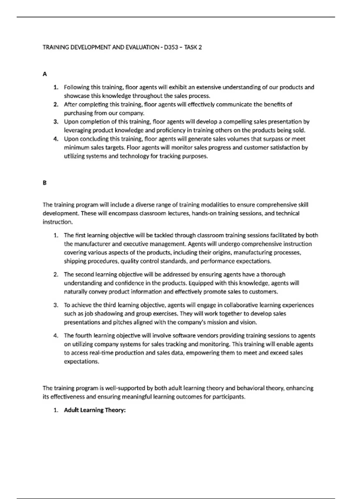 TRAINING DEVELOPMENT AND EVALUATION - D353 – TASK 2 PASSED