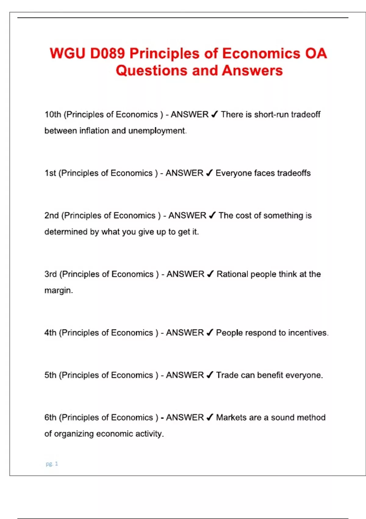 D089 Principles of Economics OA WGU 2025 With Correct Answers | VERIFIED SOLUTIONS.