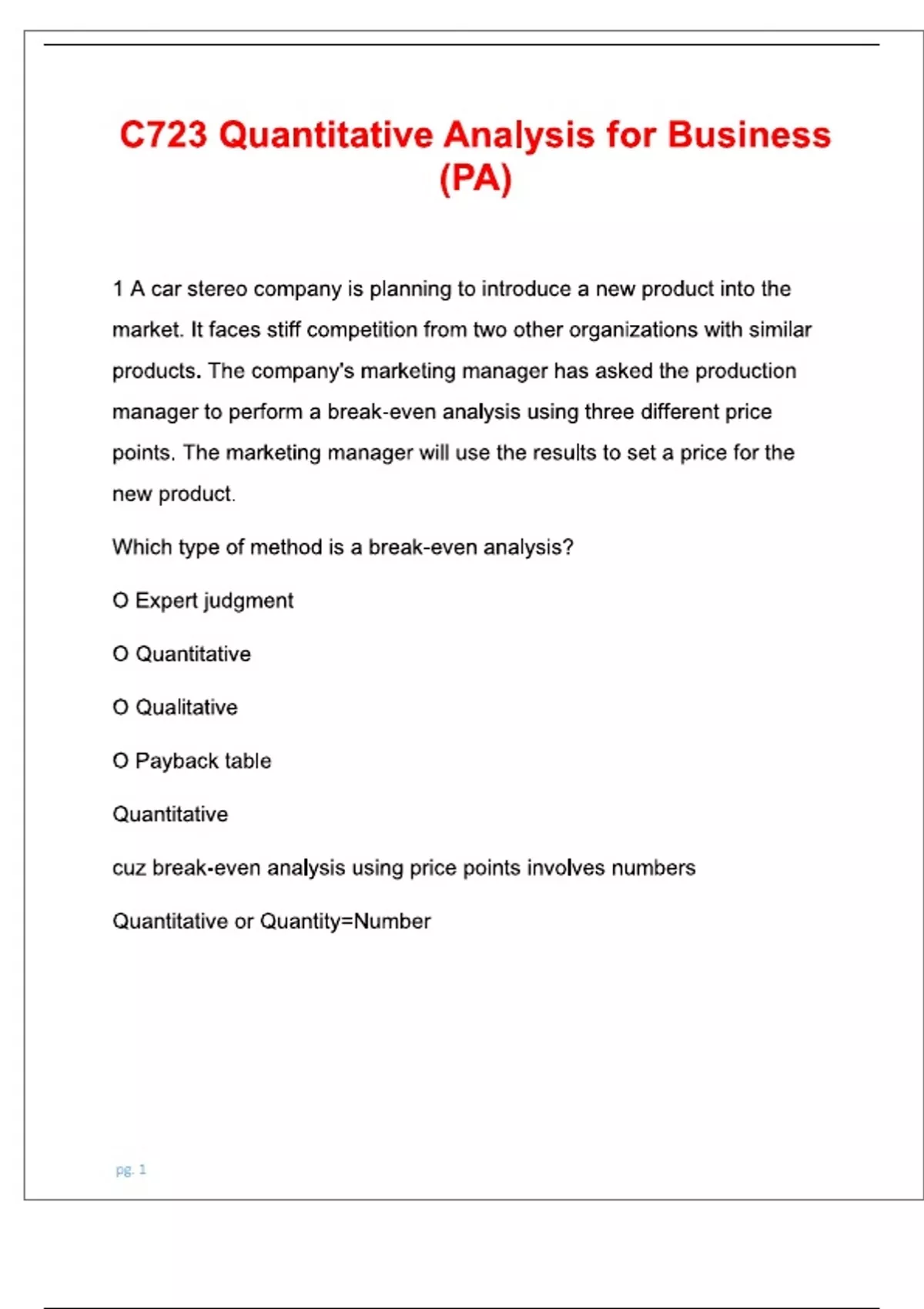 C723 Quantitative Analysis for Business (PA) WGU 2025 With Correct Answers | VERIFIED SOLUTIONS.