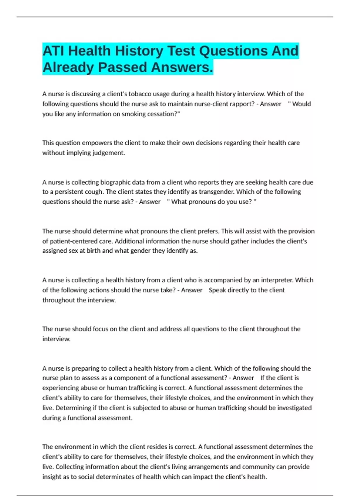 questions should the nurse ask? - Answer " What pronouns do you use? "
