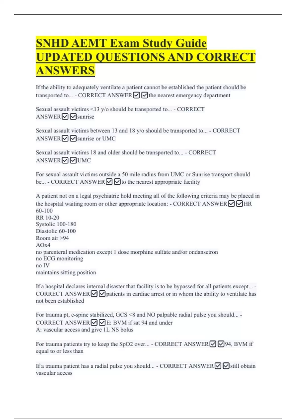 UPDATED QUESTIONS AND CORRECT