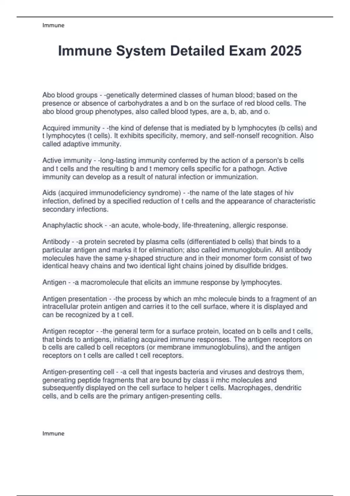 Immune System Detailed Exam 2025