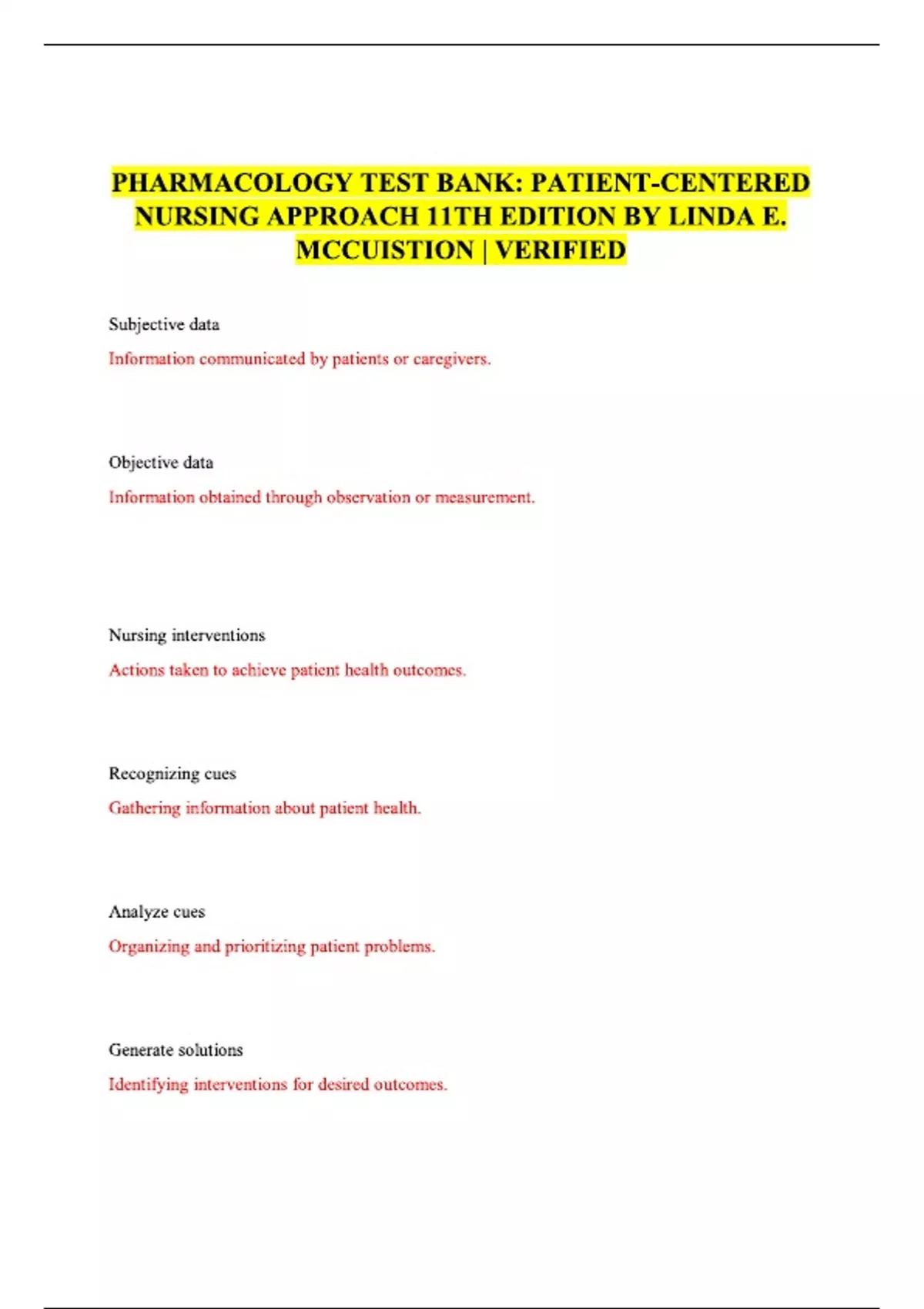 PHARMACOLOGY TEST BANK: PATIENT-CENTERED NURSING APPROACH 11TH EDITION BY LINDA E. MCCUISTION | VERIFIED