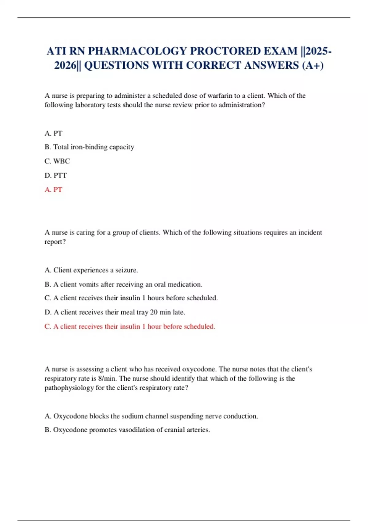 ATI RN PHARMACOLOGY PROCTORED EXAM |||| QUESTIONS WITH CORRECT ANSWERS (A+)