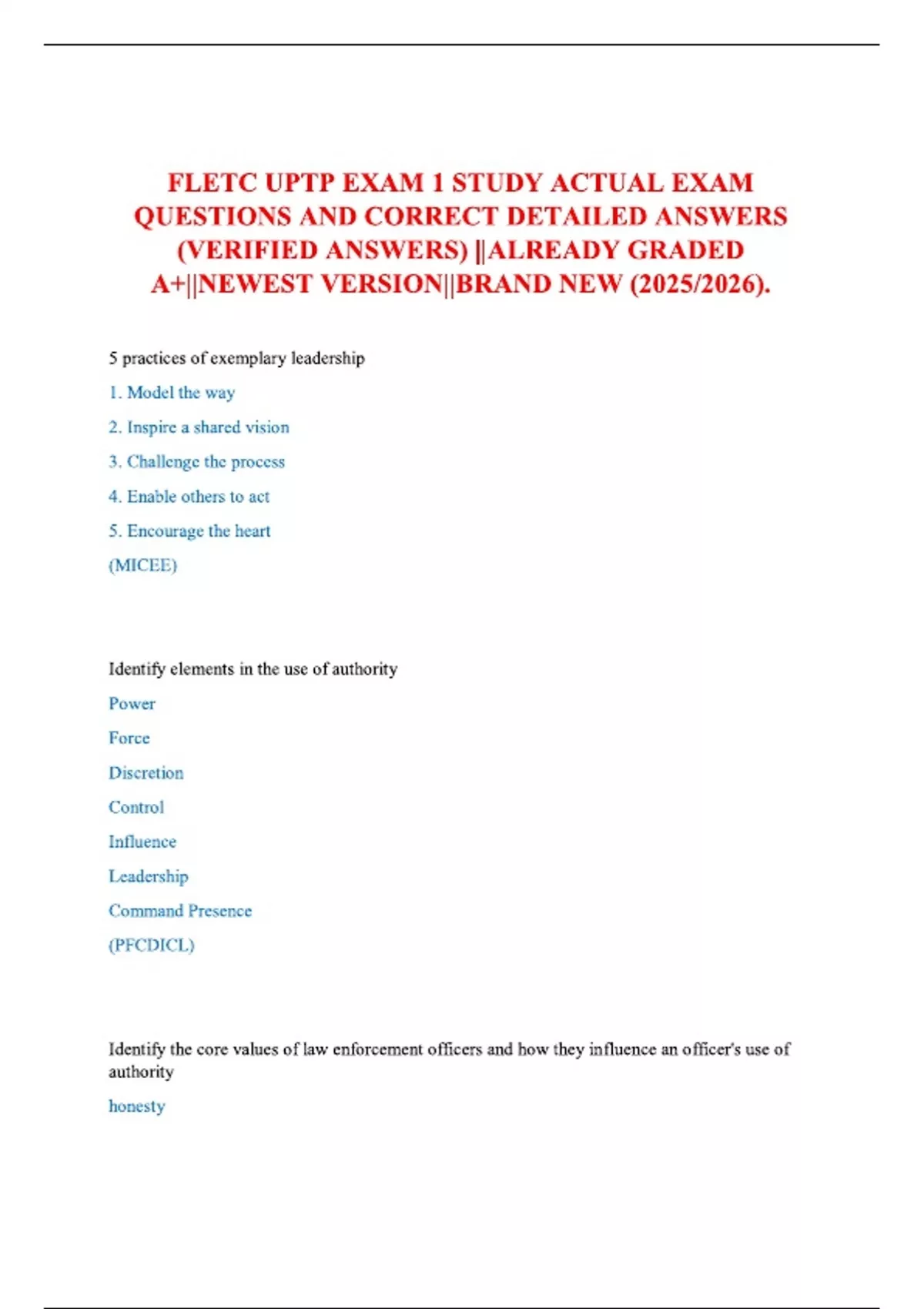 FLETC UPTP EXAM 1 STUDY ACTUAL EXAM QUESTIONS AND CORRECT DETAILED ANSWERS (VERIFIED ANSWERS) ||ALREADY GRADED A+||NEWEST VERSION||BRAND NEW (2025/2026).