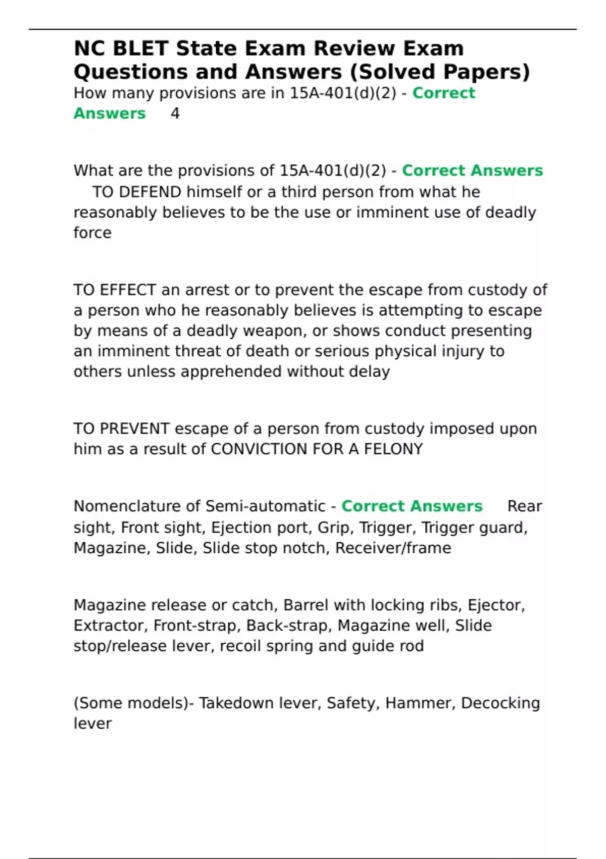 NC BLET State Exam Review Exam Questions and Answers (Solved Papers)