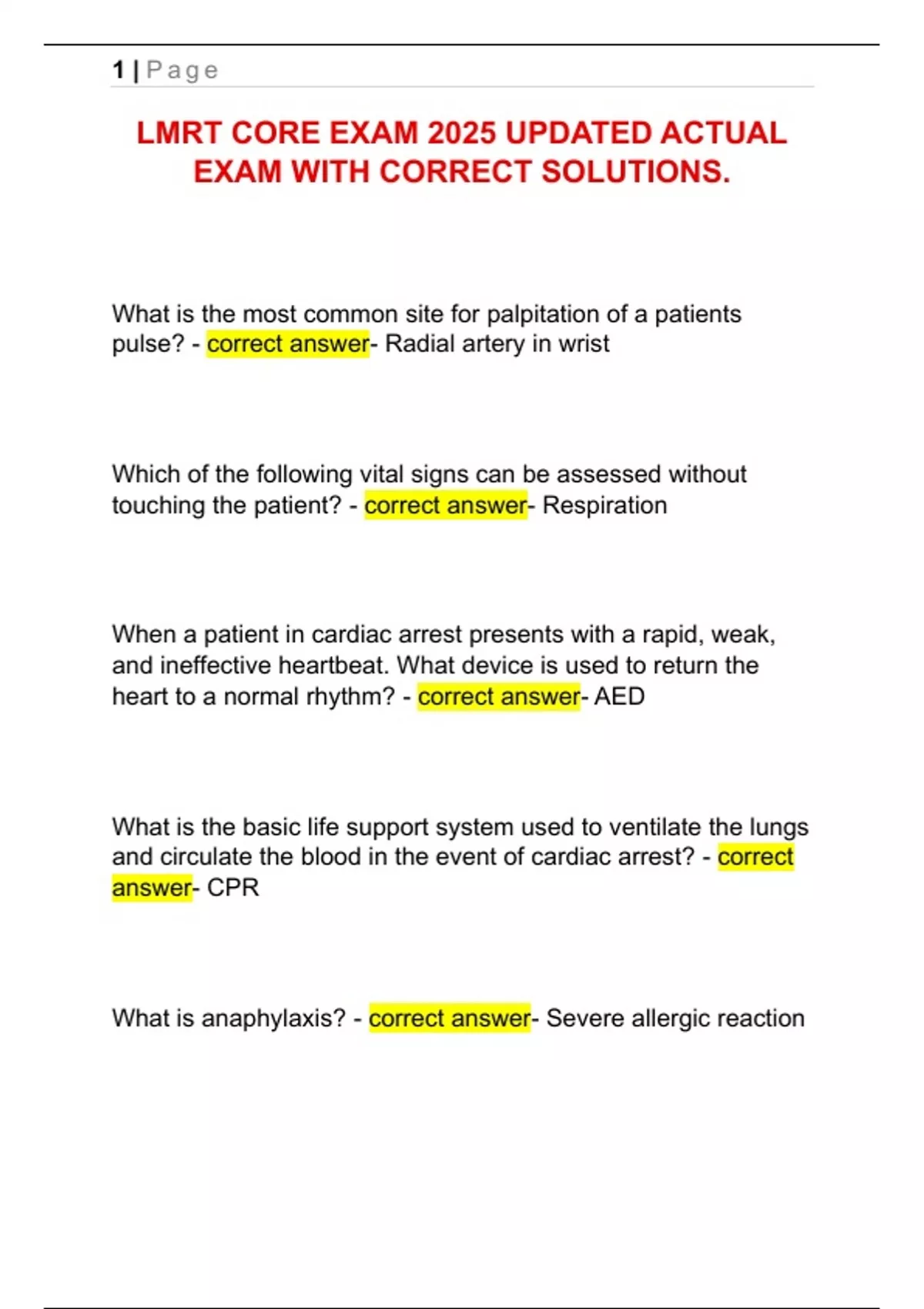 LMRT CORE EXAM 2025 UPDATED ACTUAL
