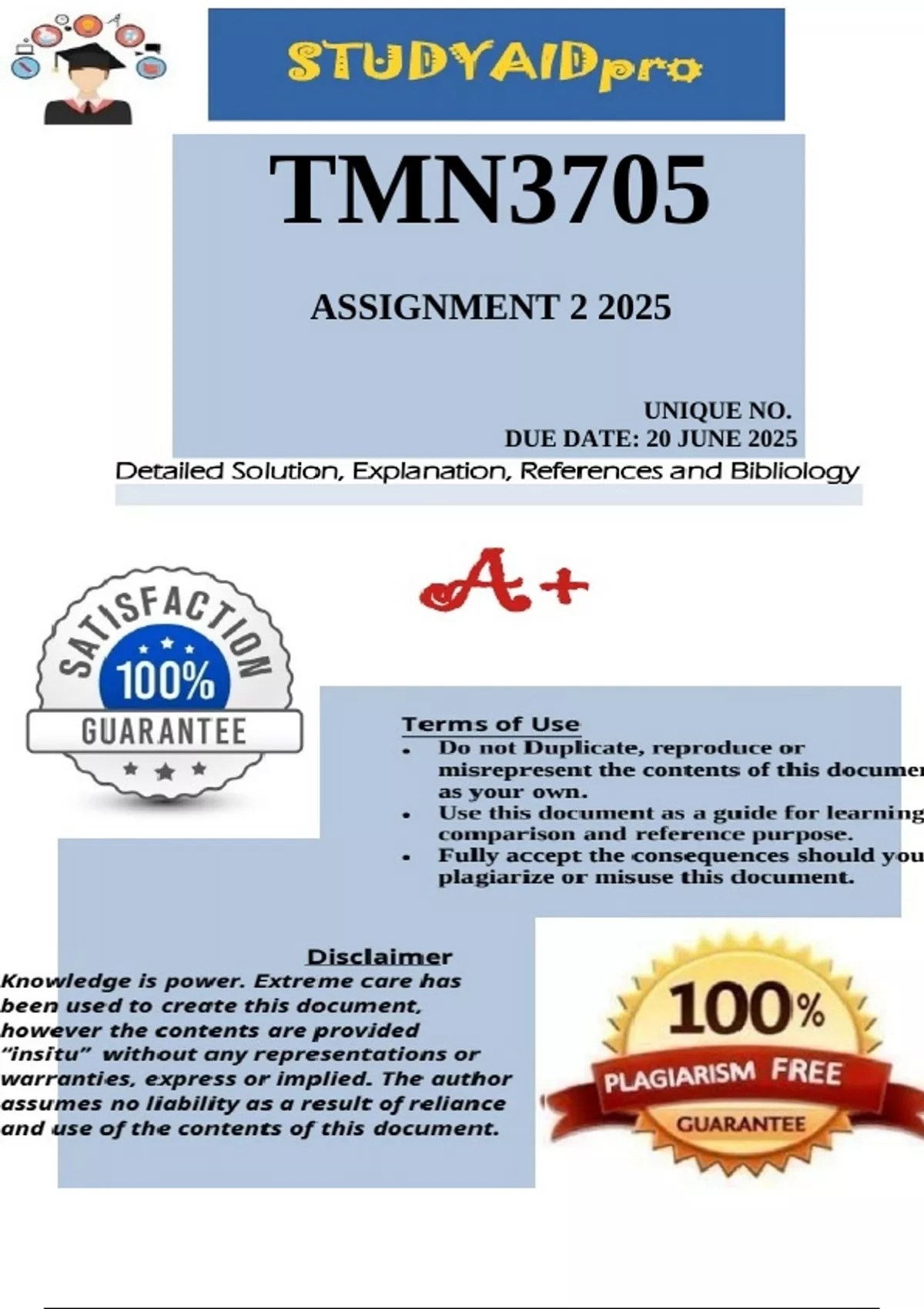 TMN3705 Assignment 2 2025 - DUE 20 June 2025 ; 100% TRUSTED workings with detailed Answers for A+ Grade.