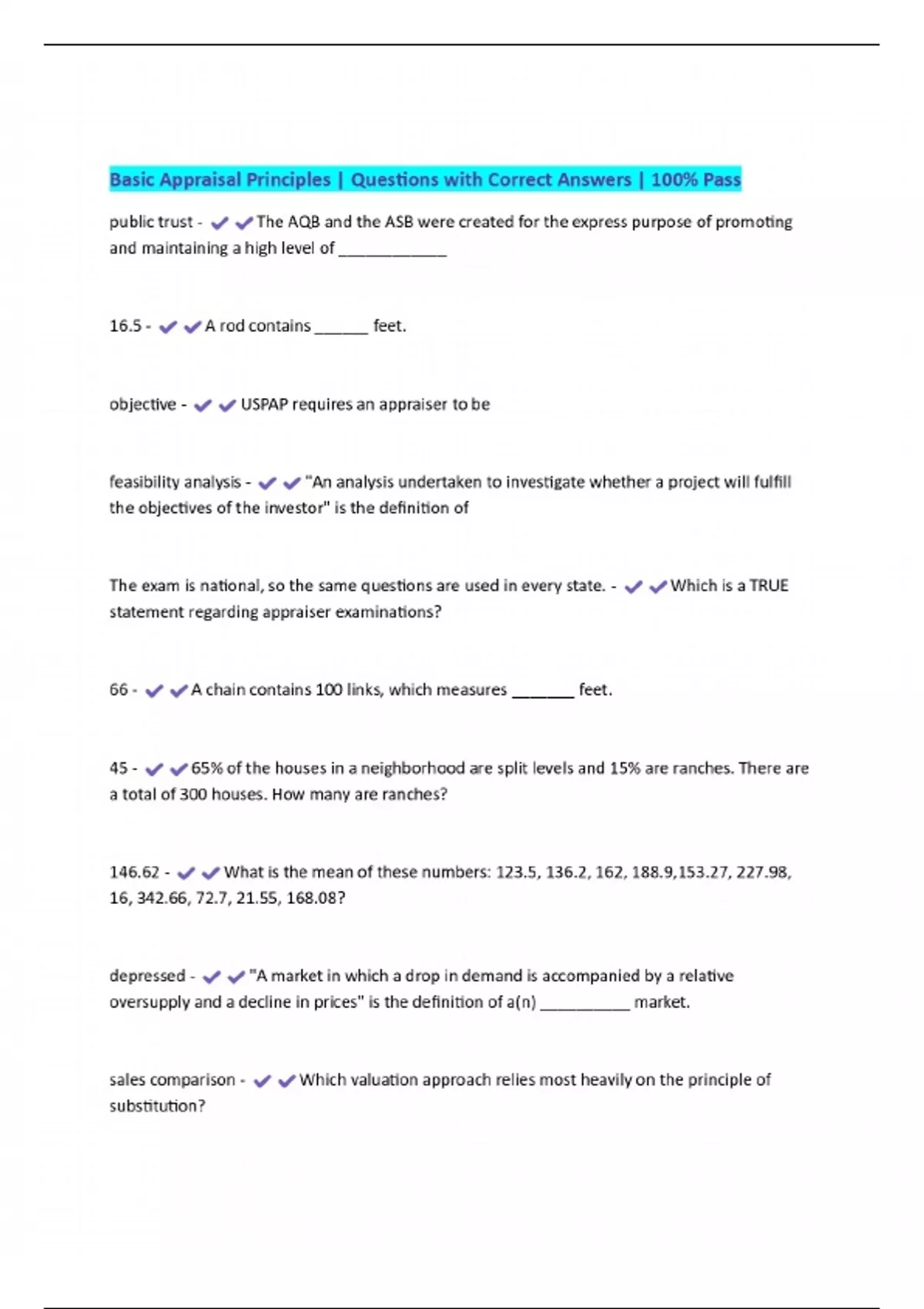 Basic Appraisal Principles | Questions with Correct Answers | 100% Pass