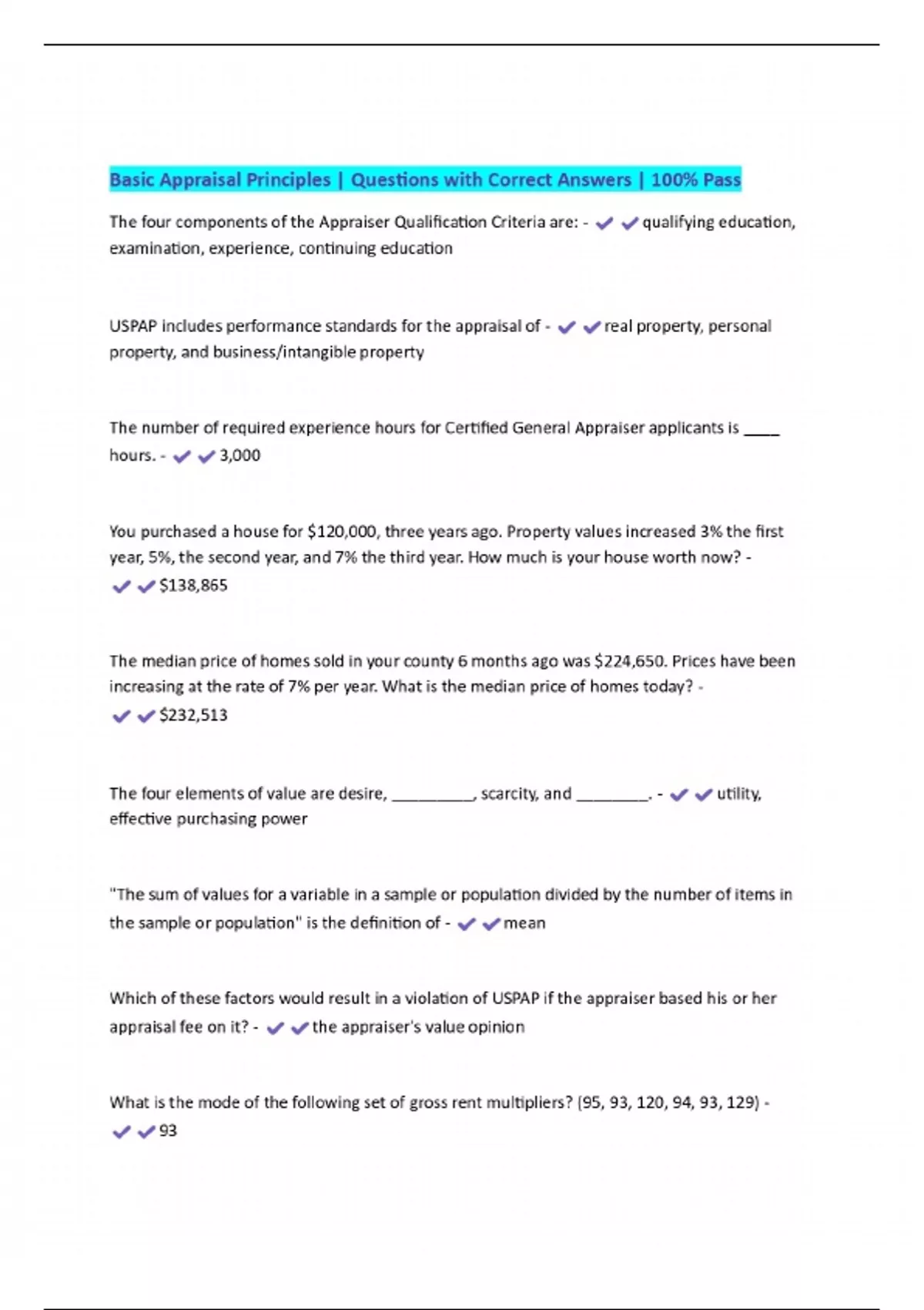 Basic Appraisal Principles | Questions with Correct Answers | 100% Pass