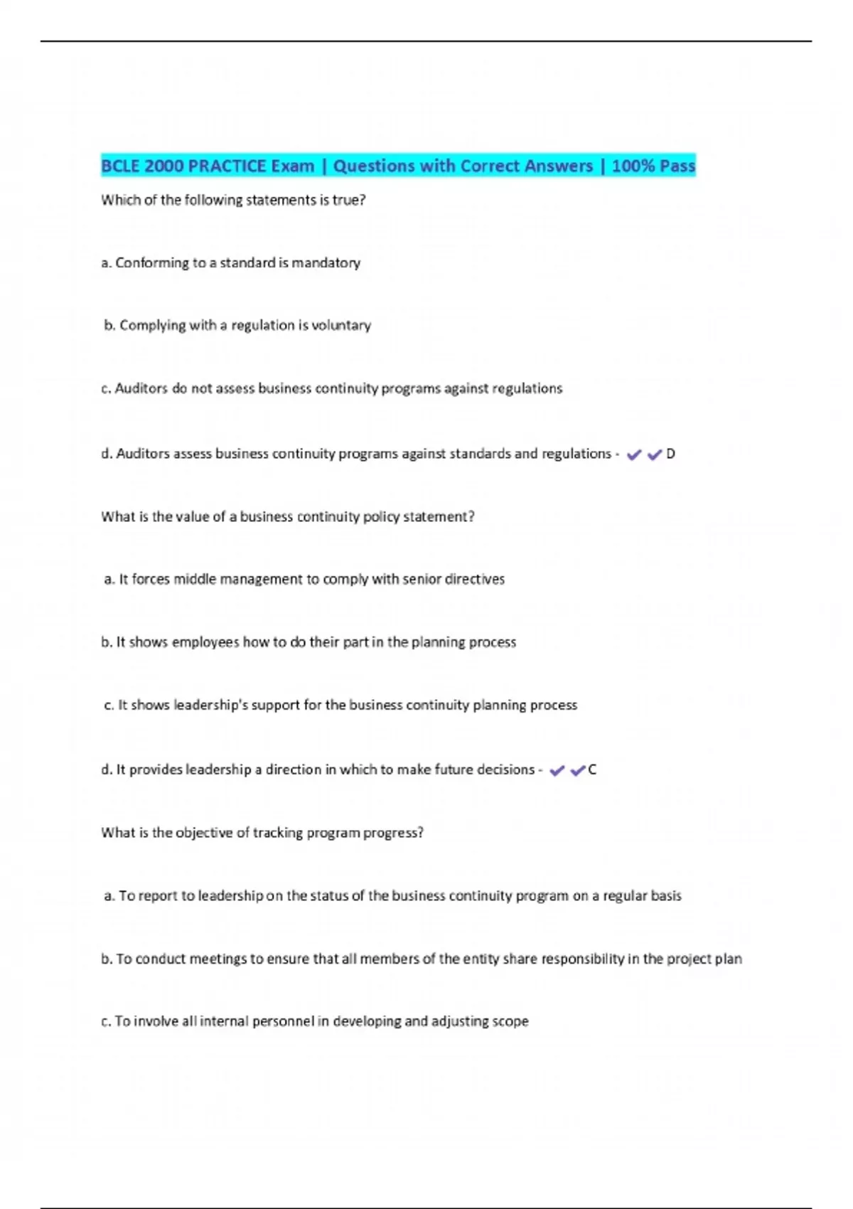 BCLE 2000 PRACTICE Exam | Questions with Correct Answers | 100% Pass