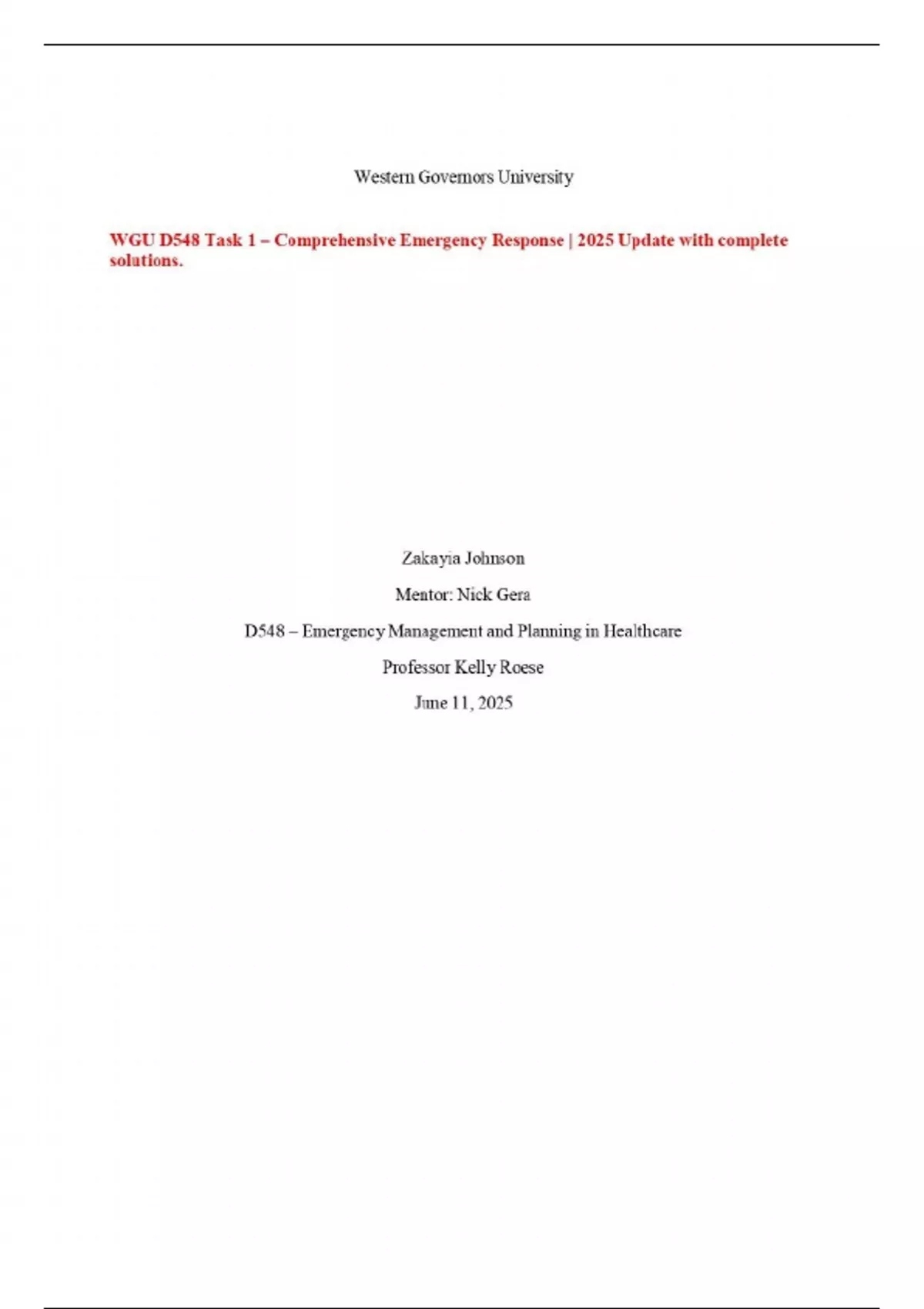 WGU D548 Task 1 – Comprehensive Emergency Response | 2025 Update with complete solutions.