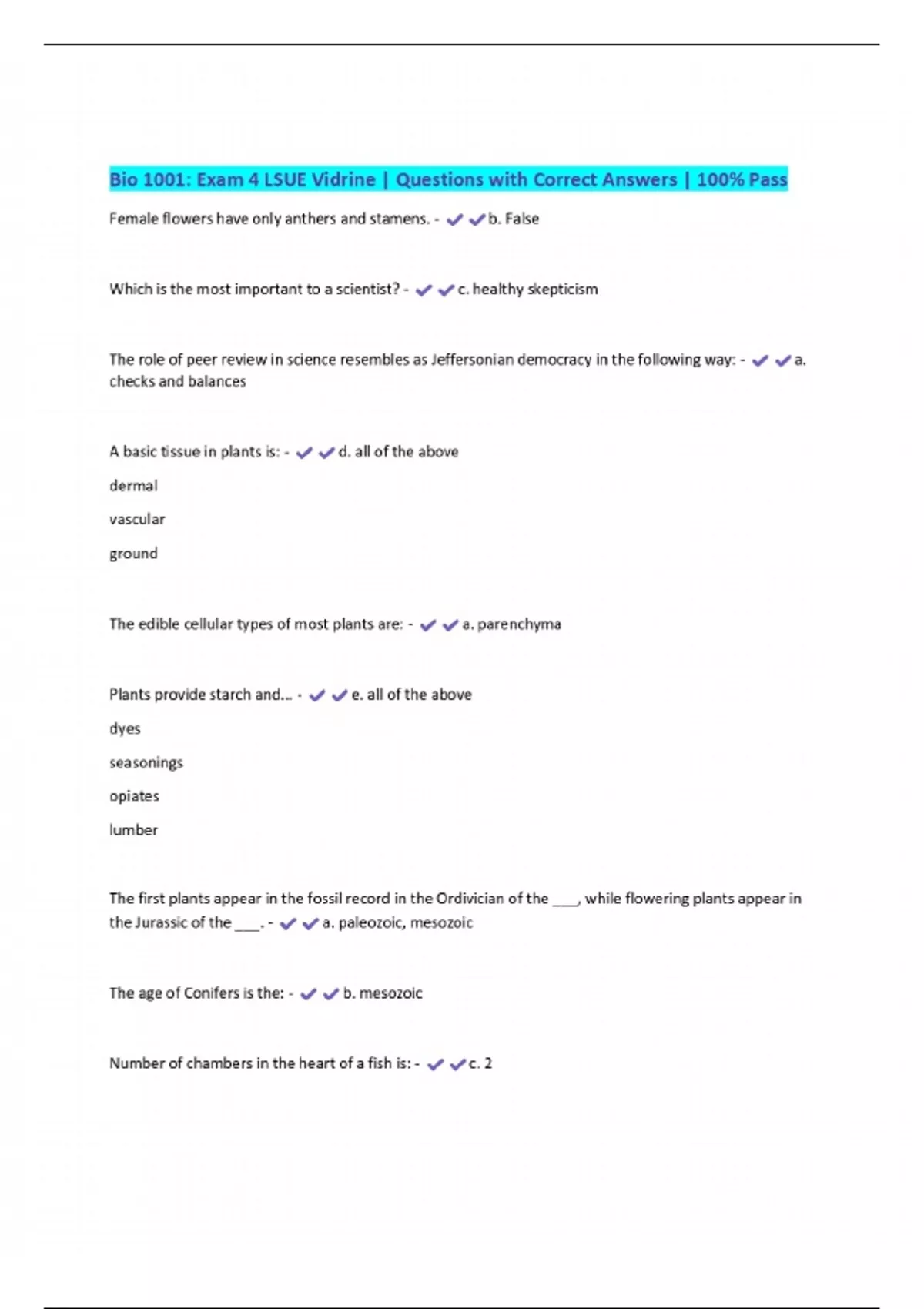 bio 1001 exam 4 lsue vidrine questions with cor