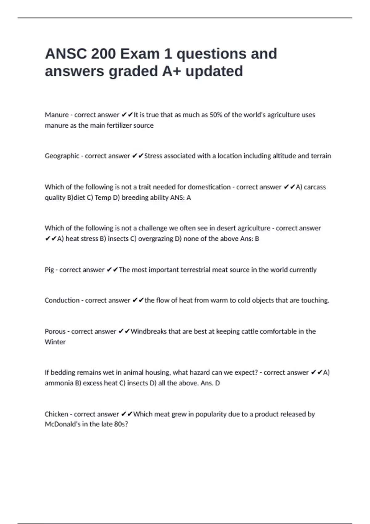 ANSC 200 Exam 1 questions and answers graded A+ updated