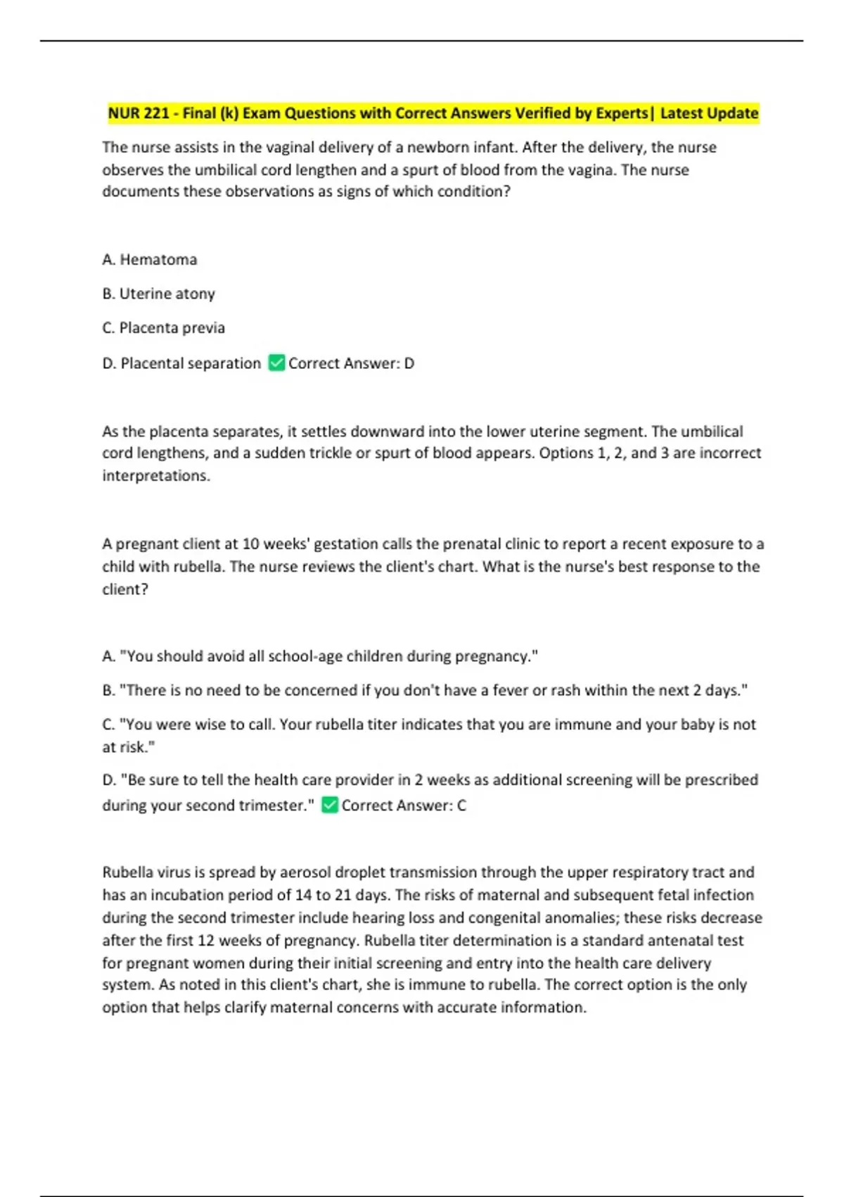 NUR 221 - Final (k) Exam Questions with Correct Answers Verified by Experts| Latest Update
