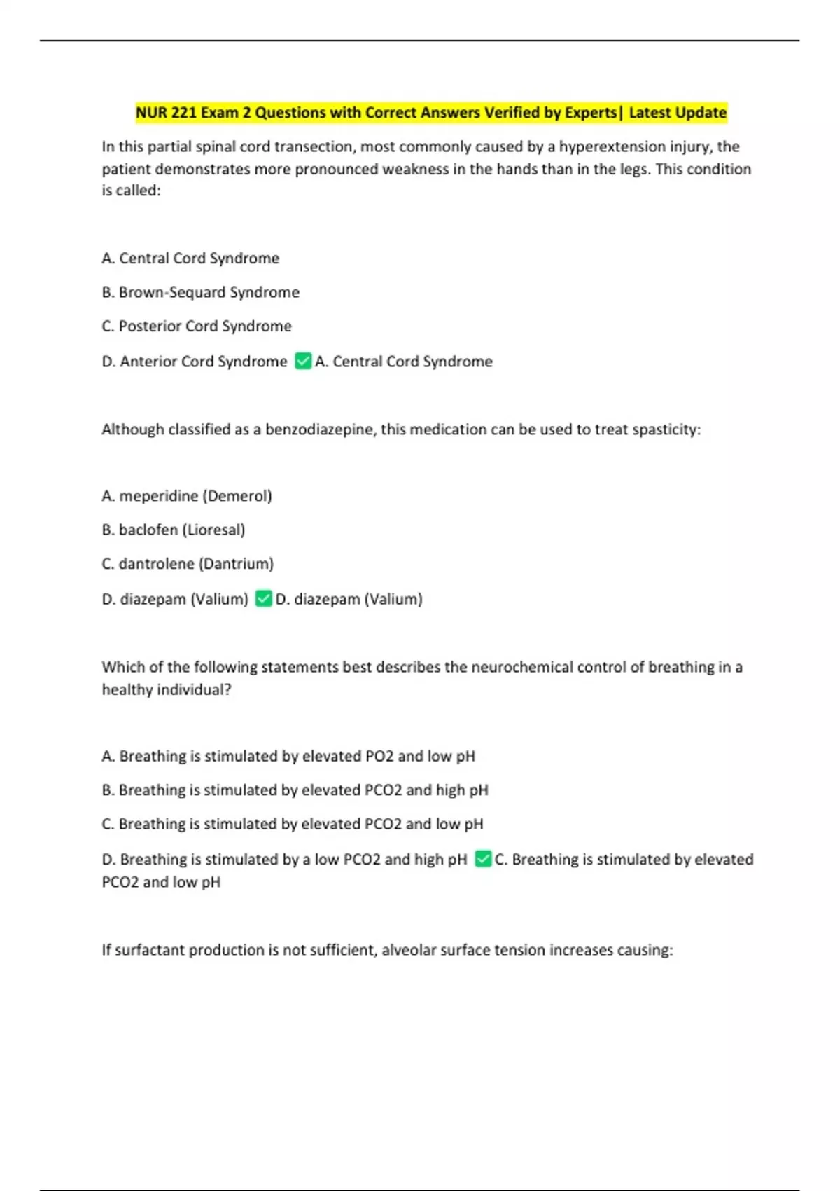 NUR 221 Exam 2 Questions with Correct Answers Verified by Experts| Latest Update
