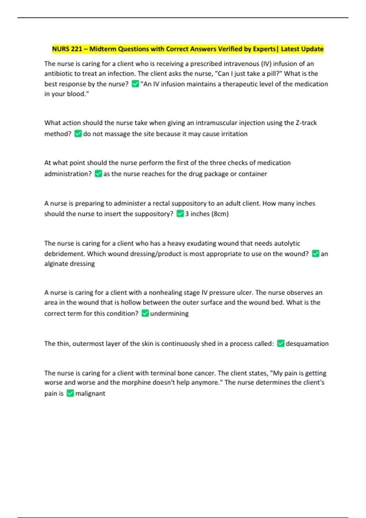 NURS 221 – Midterm Questions with Correct Answers Verified by Experts| Latest Update