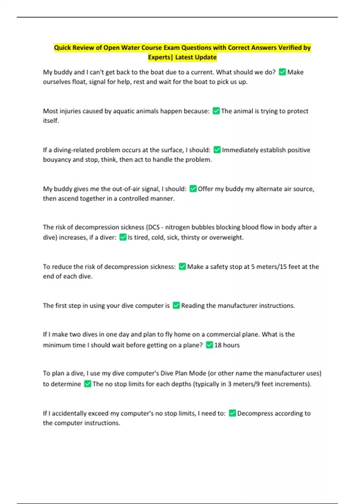 Quick Review of Open Water Course Exam Questions with Correct Answers Verified by