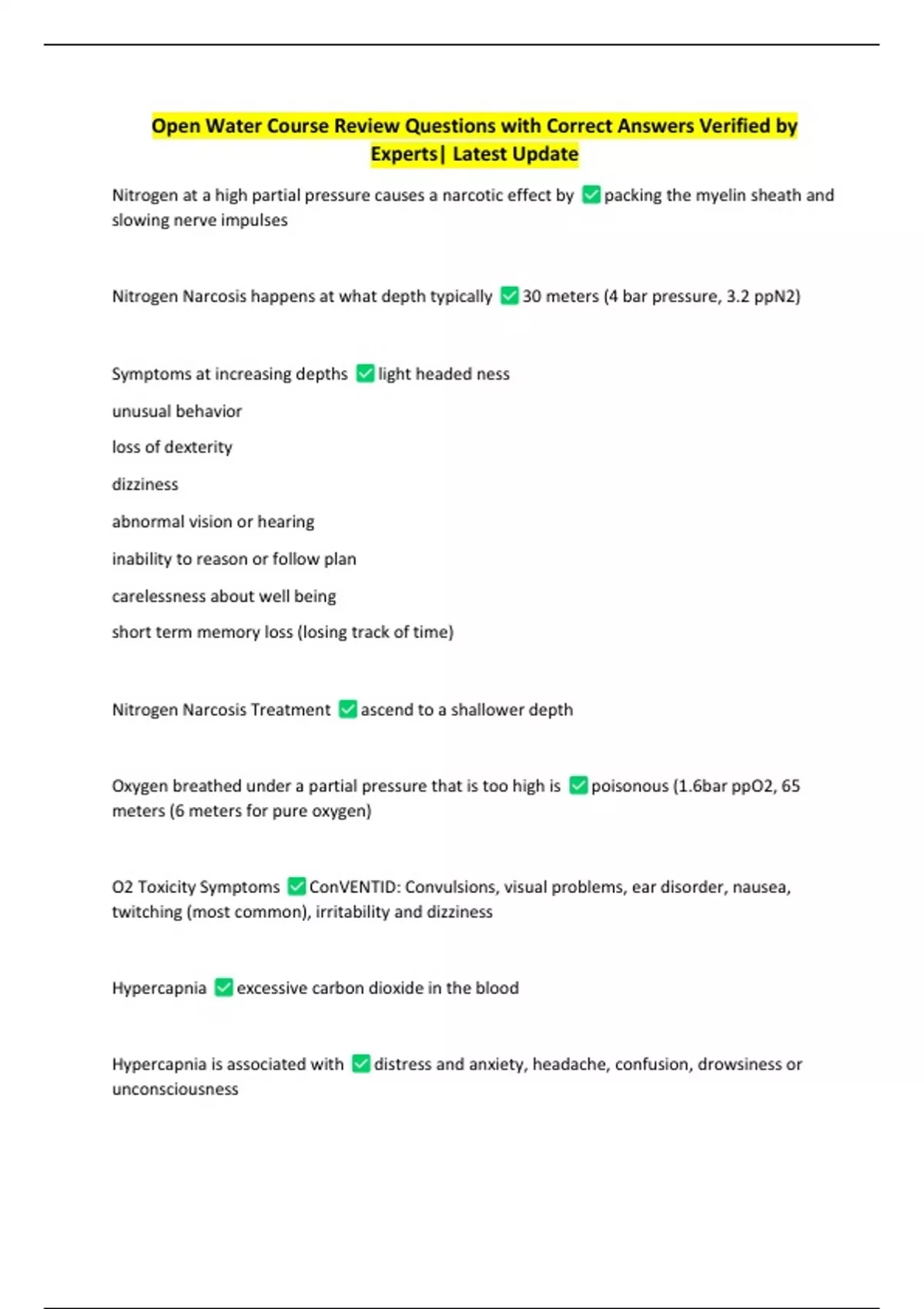 Open Water Course Review Questions with Correct Answers Verified by Experts| Latest Update