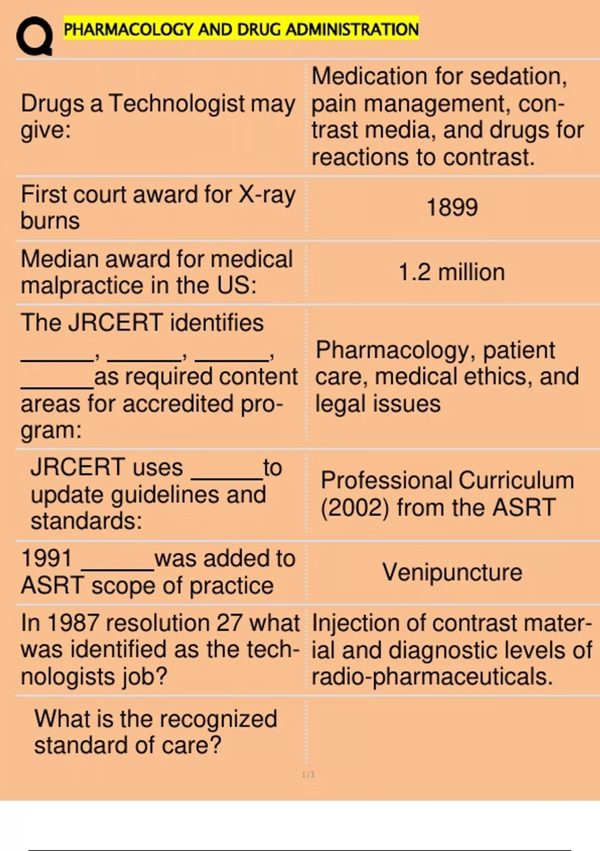 Explore pharmacology and drug administration for imaging technologists, covering medication types, legal aspects, professional standards, and HIPAA compliance. This information aims to provide a comprehensive overview of the critical aspects of pharmacology and drug administration relevant to imaging technologists.