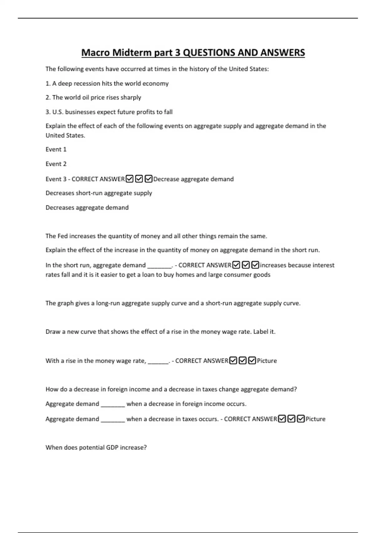 Event 3 - CORRECT ANSWER✅✅✅Decrease aggregate demand