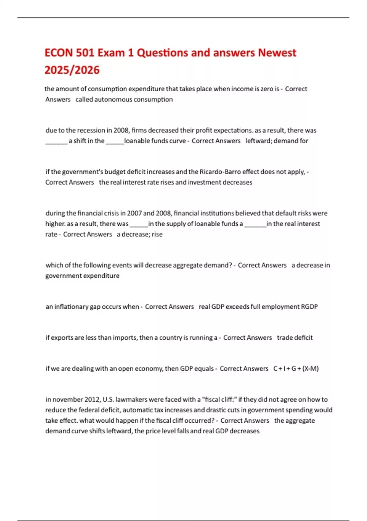 Il` take effect. what would happen if the fiscal cliff occurred? - Correct Answers the aggregate
