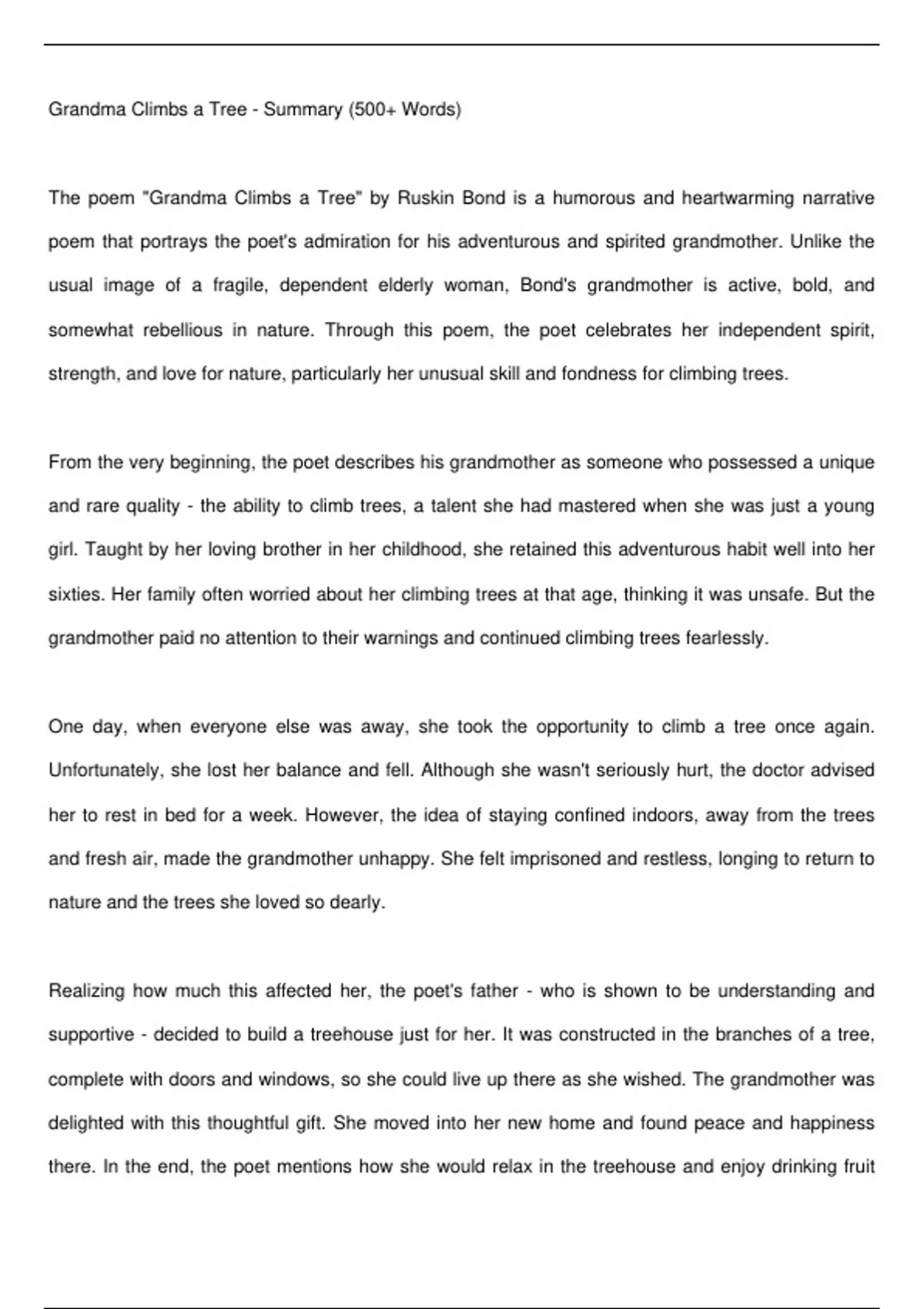 Grandma Climbs a Tree - Summary (500+ Words)