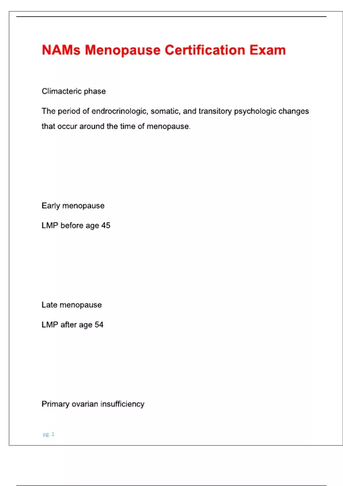 menopause certification exam