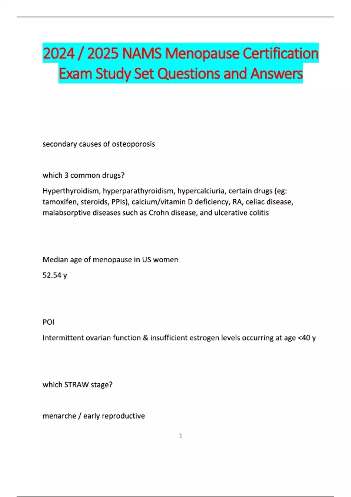 2025 NAMS Menopause Certification Exam Study Set Questions & Answer Key with Complete Solution.