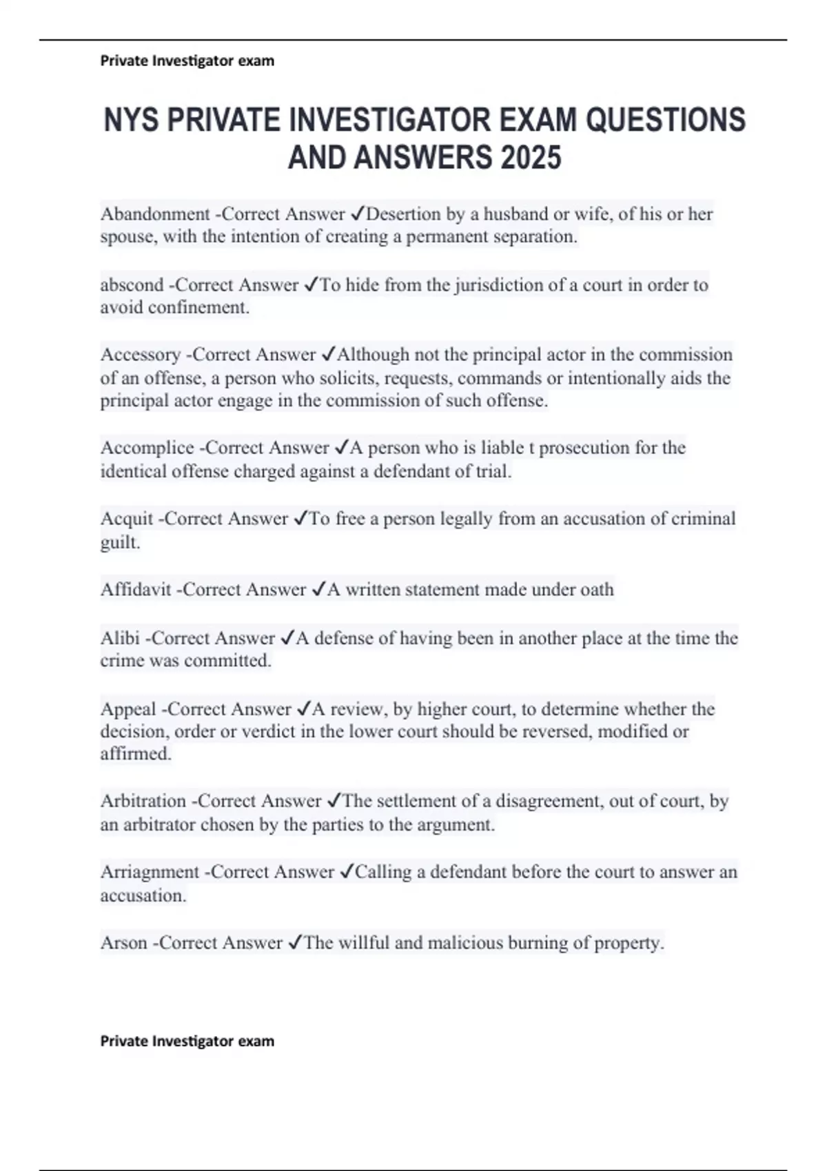 , Private Investigator exam