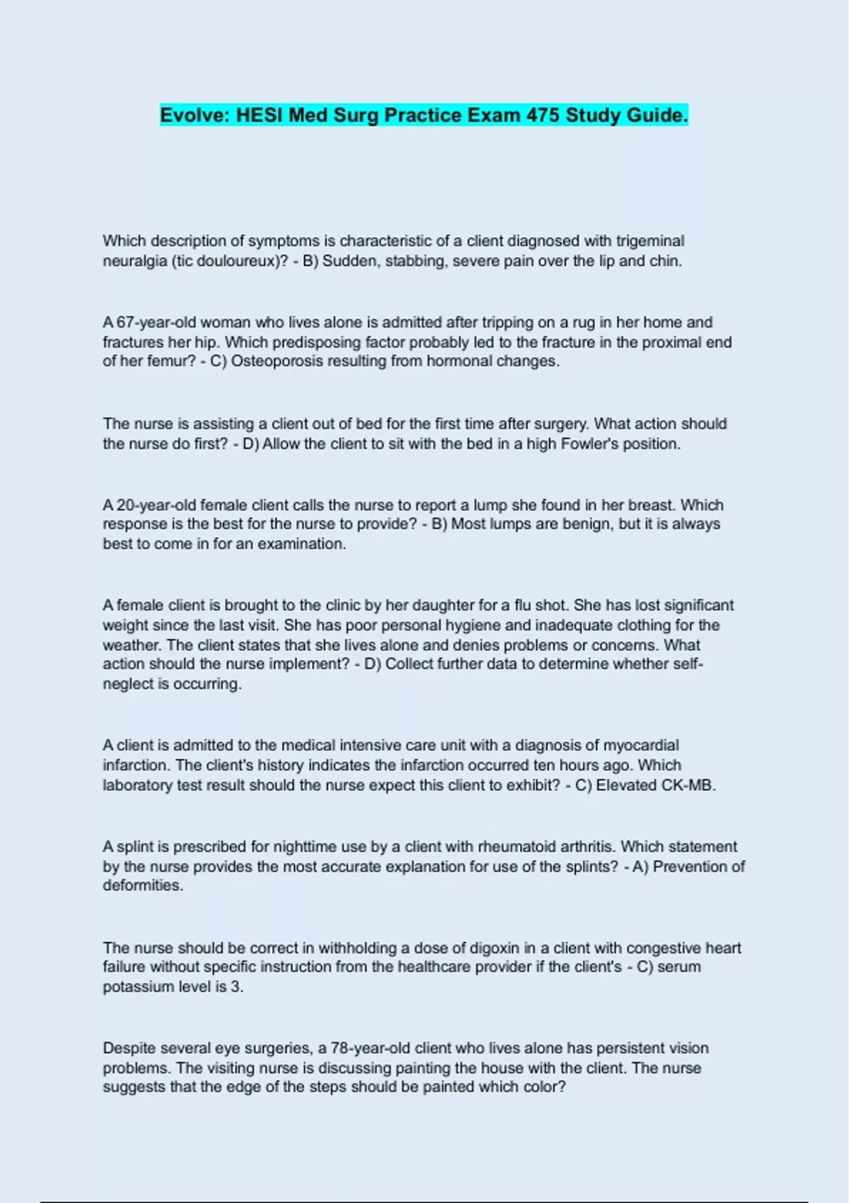 laboratory test result should the nurse expect this client to exhibit? - C) Elevated CK-MB.