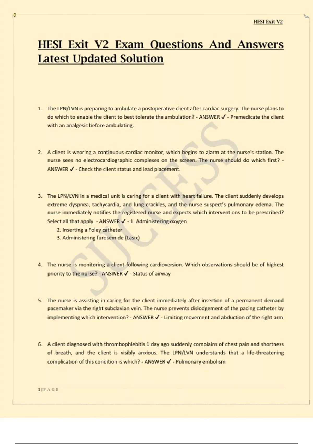 HESI Exit V2 Exam Questions And Answers Latest Updated Solution