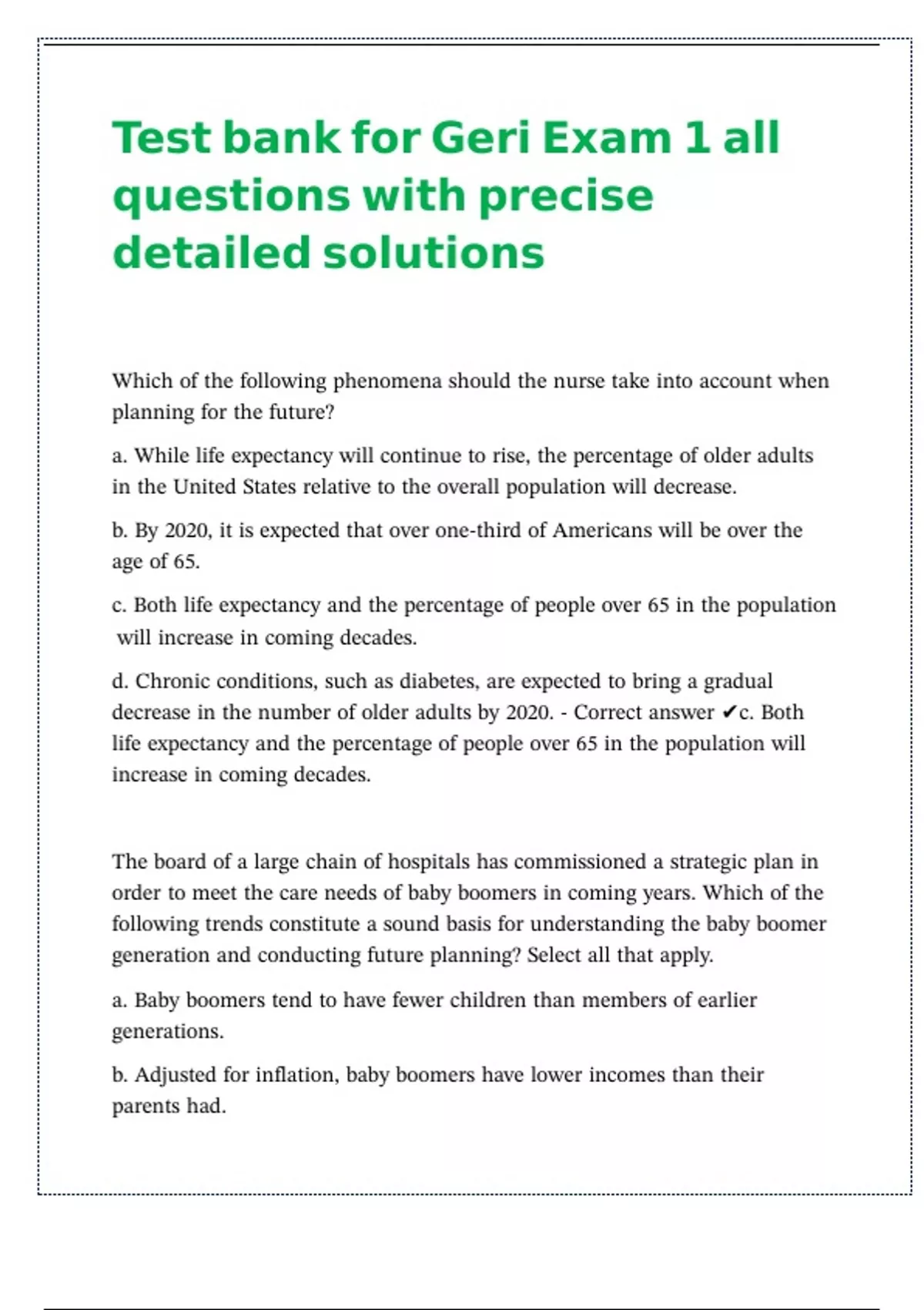 Test bank for Geri Exam 1 all |! |! |! |! |! |! |!
