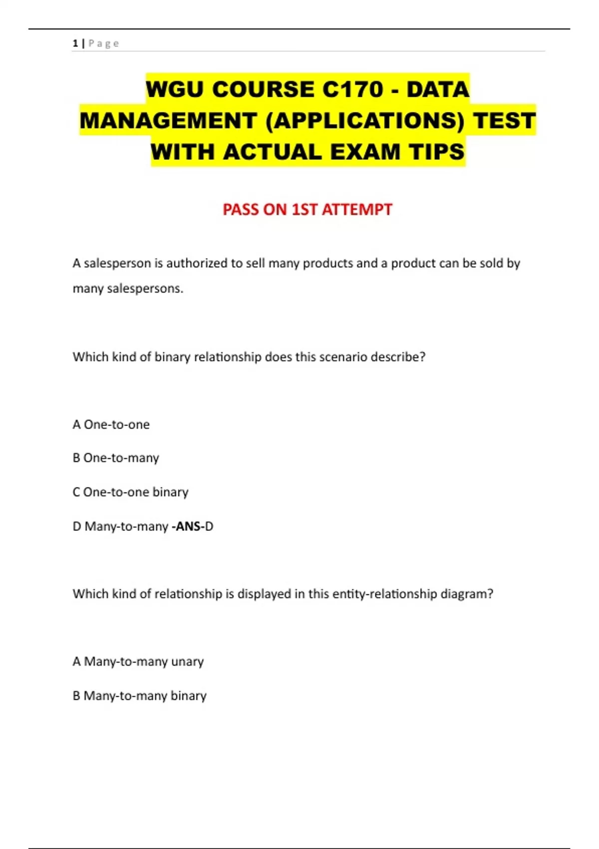 D One-to-one binary -ANS-A