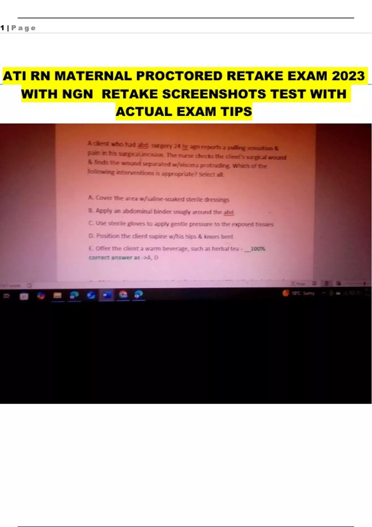 ATI RN MATERNAL PROCTORED RETAKE EXAM 2023 WITH NGN RETAKE SCREENSHOTS TEST WITH ACTUAL EXAM TIPS
