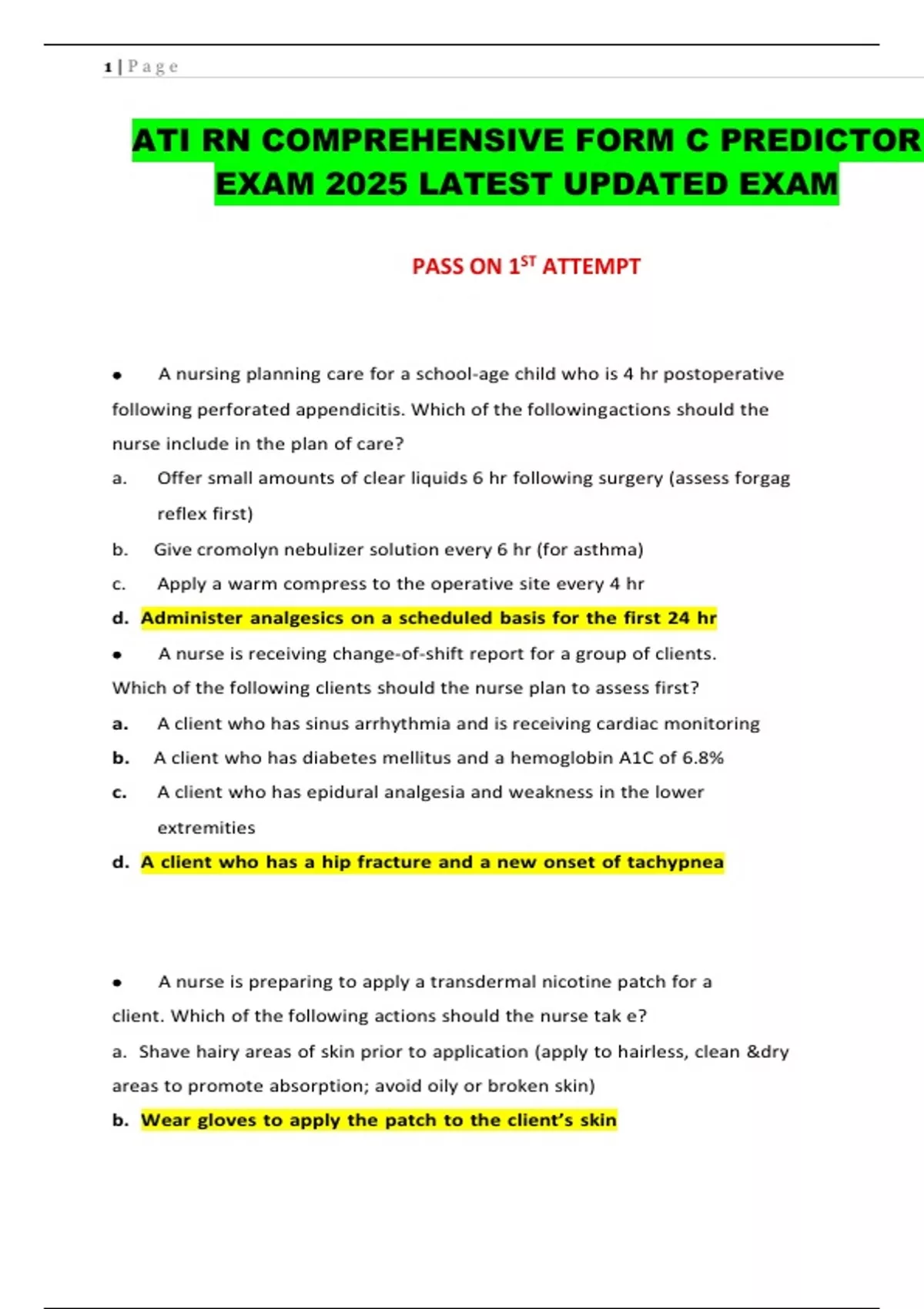 ATI RN COMPREHENSIVE FORM C PREDICTOR