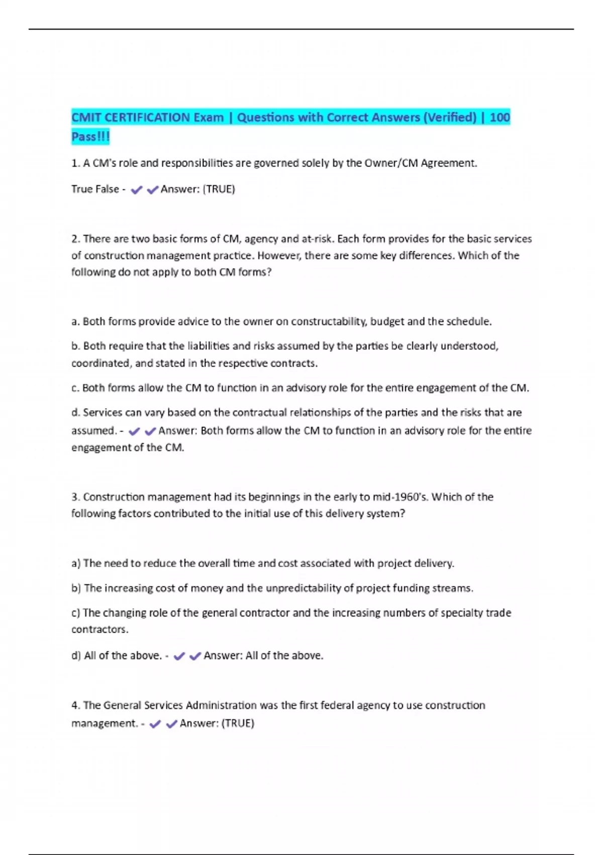 CMIT CERTIFICATION Exam | Questions with Correct Answers (Verified) | 100 Pass!!!