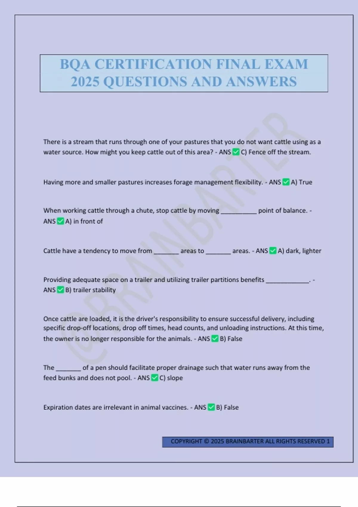 BQA CERTIFICATION FINAL EXAM 2025 QUESTIONS AND ANSWERS