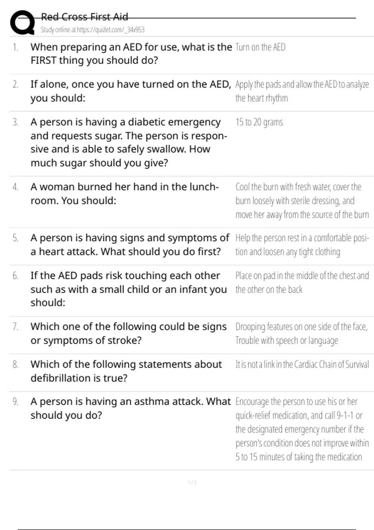 Exam of 3 pages for the course Red Cross First Aid at Red Cross First Aid (Red Cross First Aid)