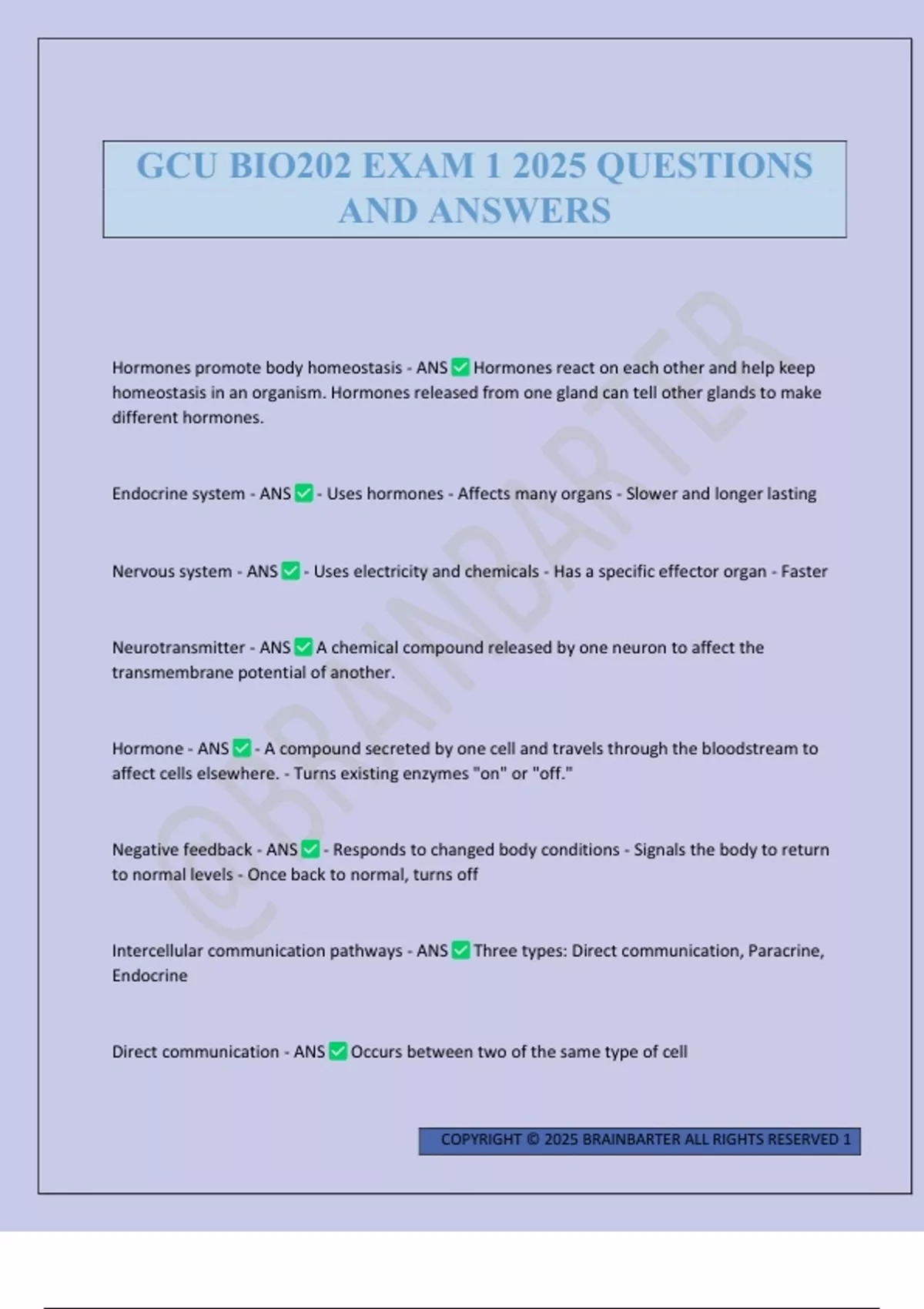 GCU BIO202 EXAM 1 2025 QUESTIONS AND ANSWERS