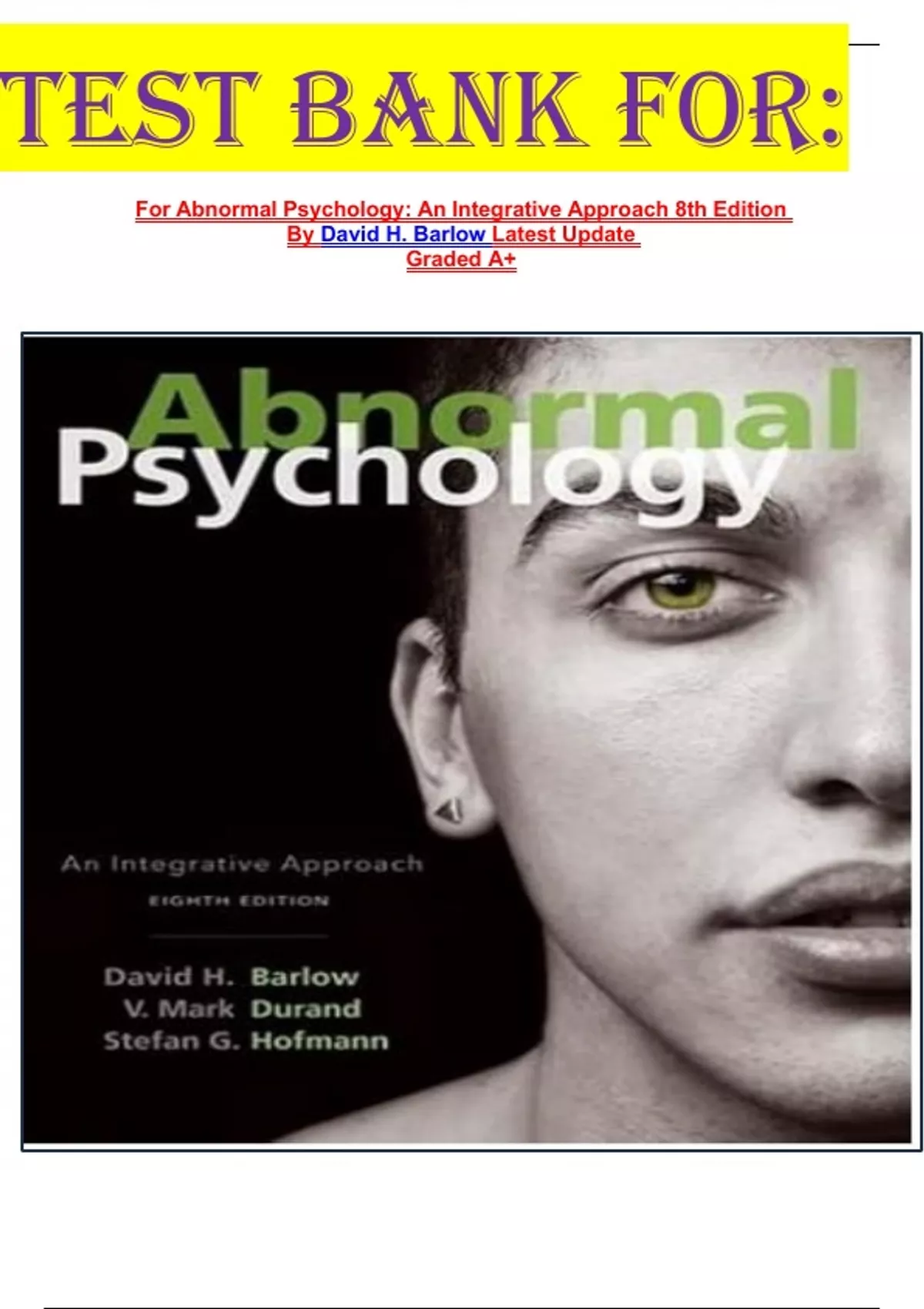 TEST BANK FOR: For Abnormal Psychology: An Integrative Approach 8th Edition By David H. Barlow Latest Update Graded A+
