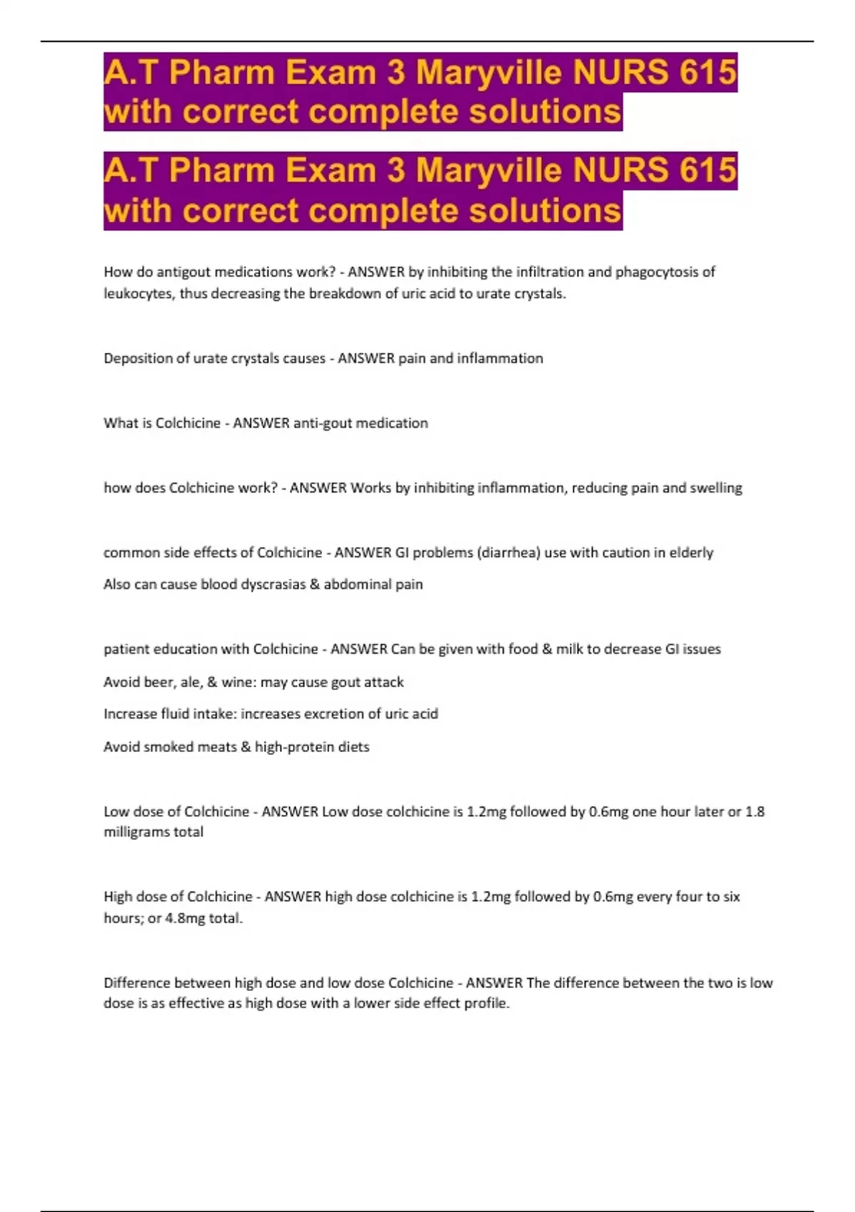 A.T Pharm Exam 3 Maryville NURS 615 with correct complete solutions A.T Pharm Exam 3 Maryville NURS 615 with correct complete solutions A.T Pharm Exam 3 Maryville NURS 615 with correct complete solutions A.T Pharm Exam 3 Maryville NURS 615 with correct complete solutions A.T Pharm Exam 3 Maryville NURS 615 with correct complete solutions A.T Pharm Exam 3 Maryville NURS 615 with correct complete solutions A.T Pharm Exam 3 Maryville NURS 615 with correct complete solutions