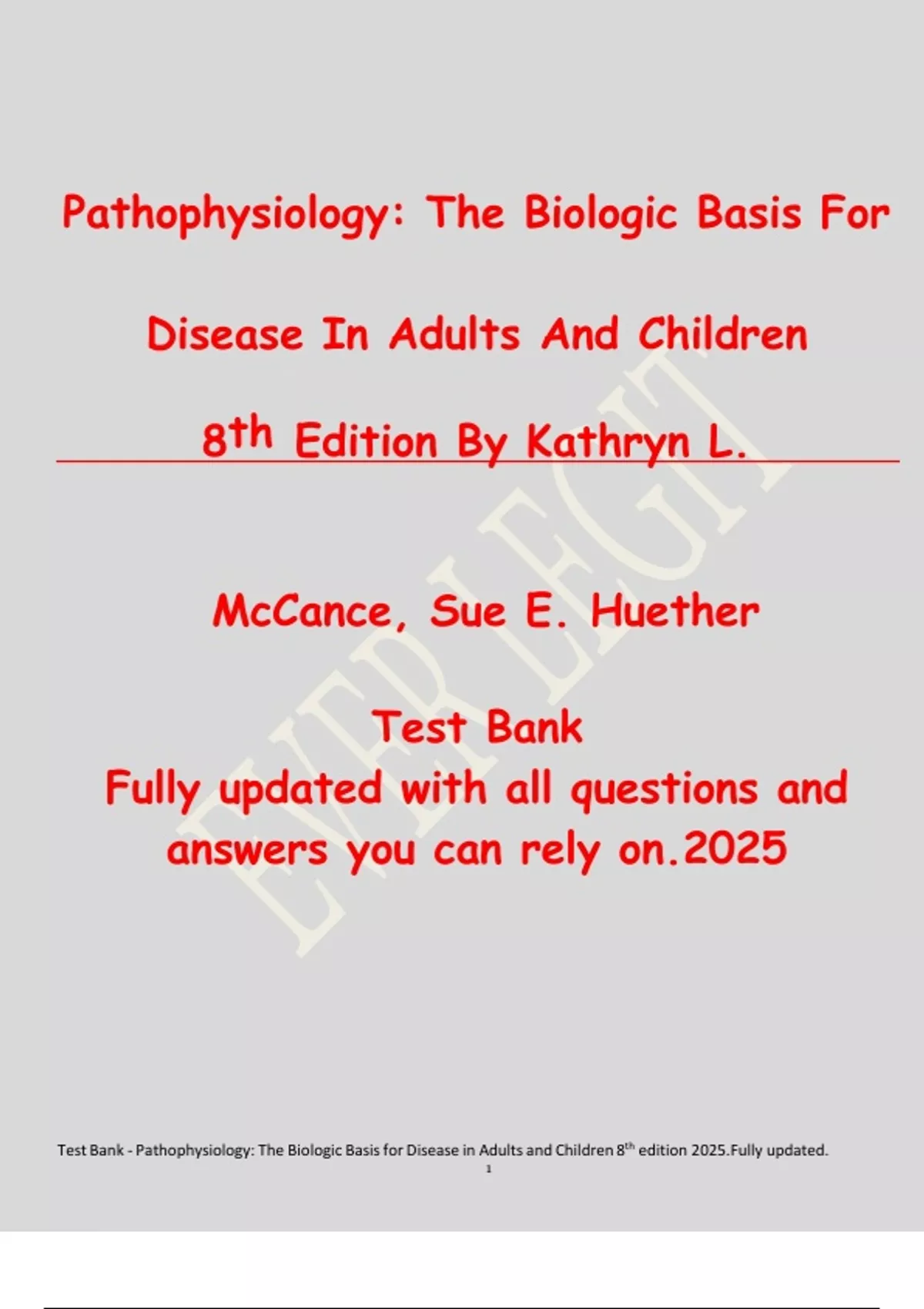 Test Bank - Pathophysiology: The Biologic Basis for Disease in Adults and Children 8th edition 2025.Fully updated.